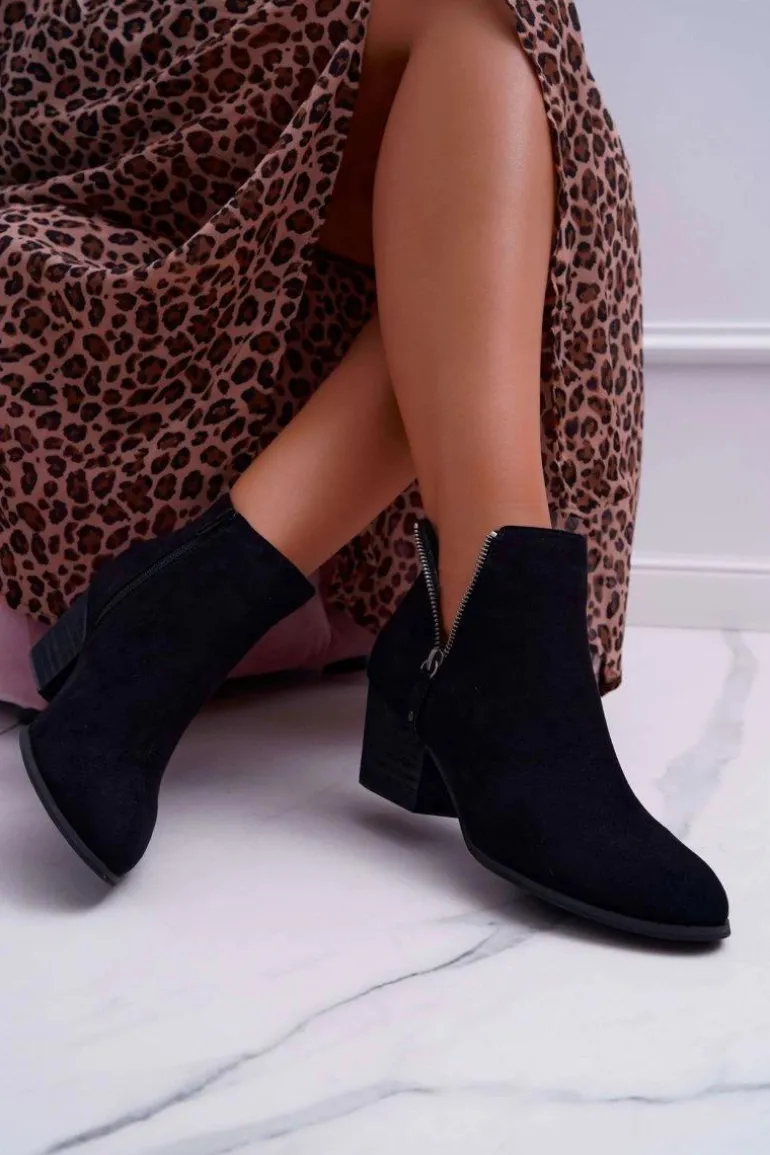 Botki Damskie Na Obcasie Suwak Zamszowe Czarne Farre