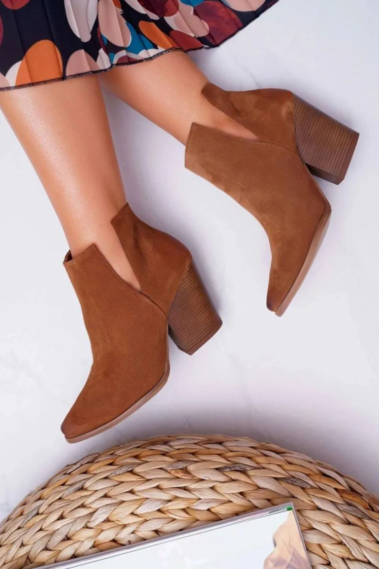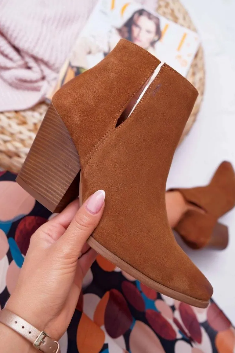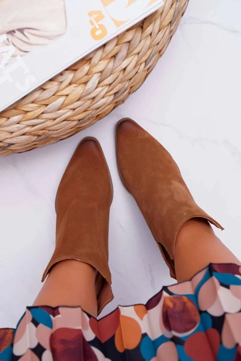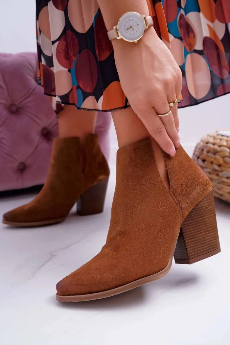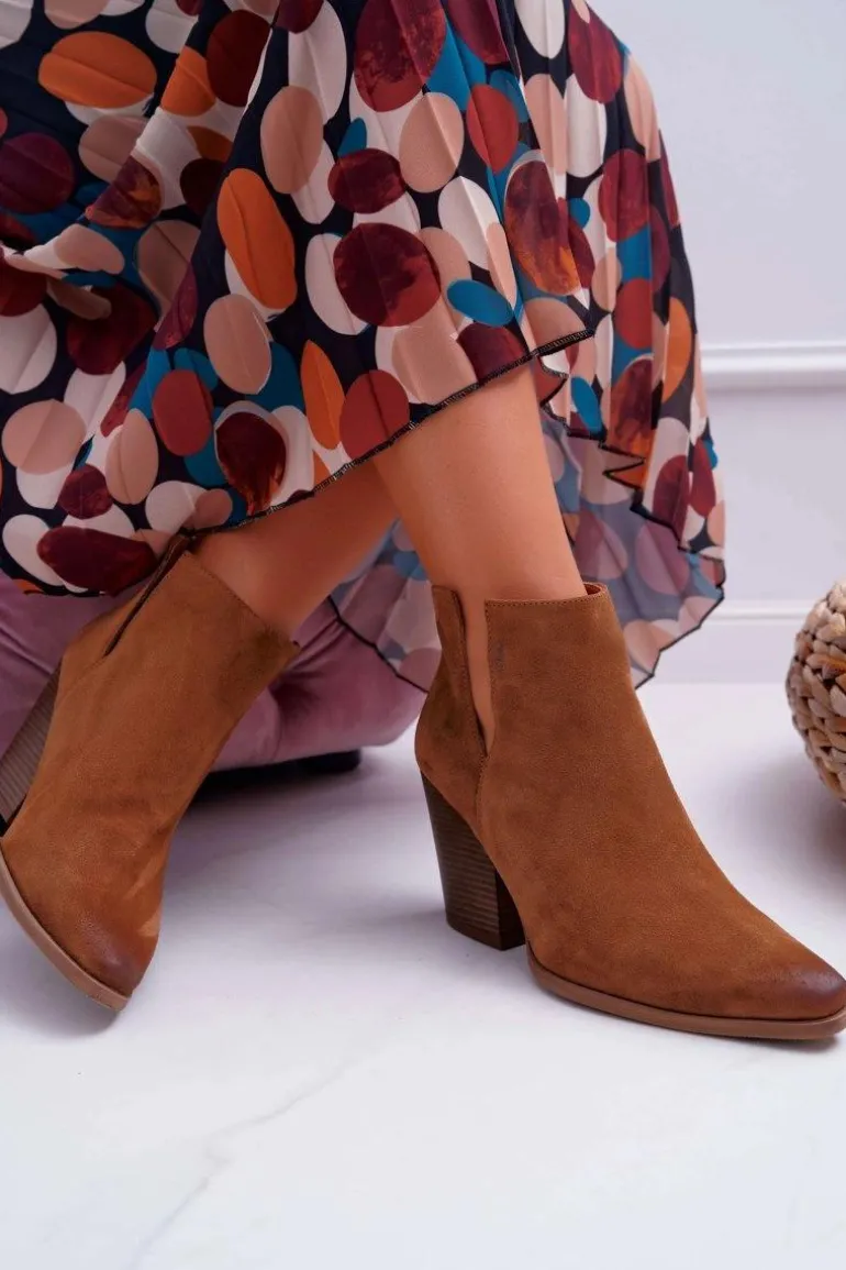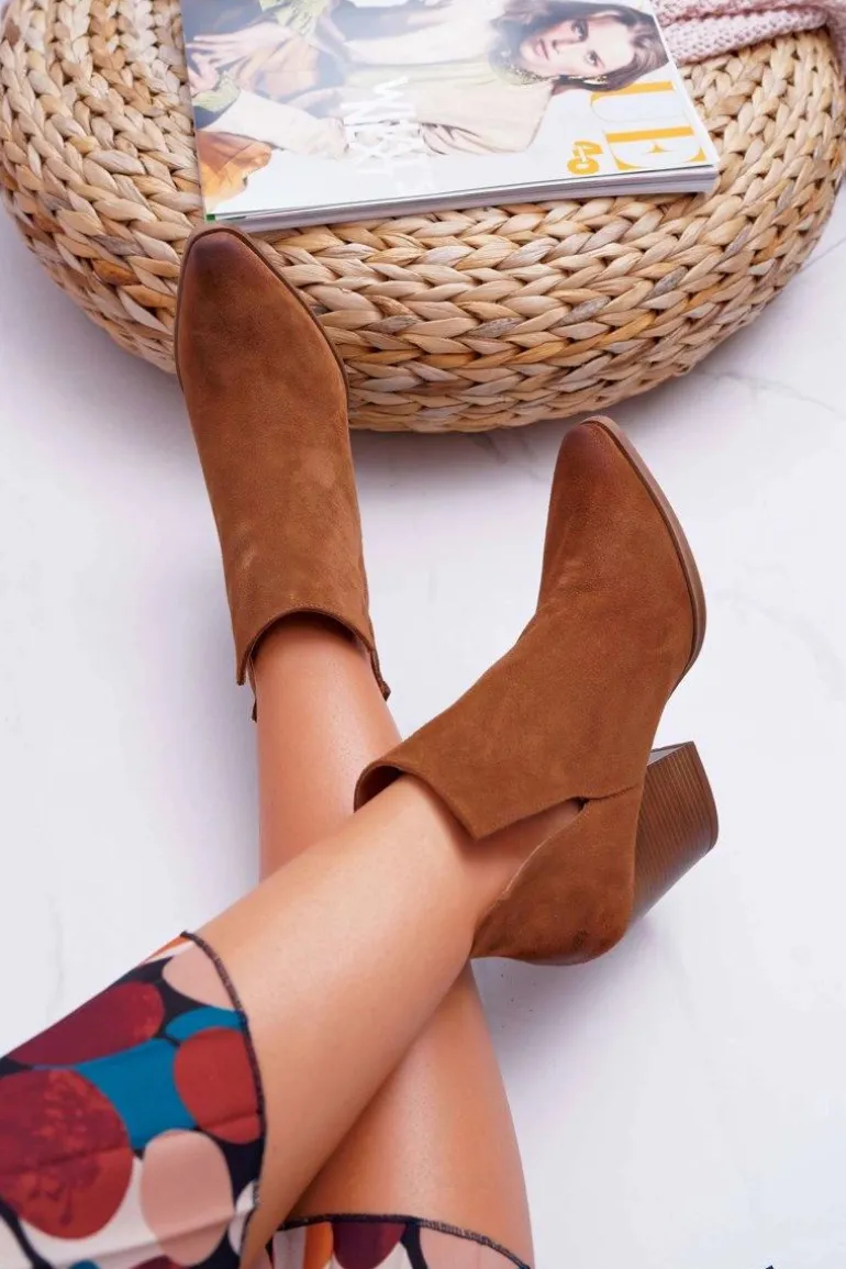 Botki Damskie Na Obcasie Wiosenne Skóra Zamsz Brązowe Nicole 2430
