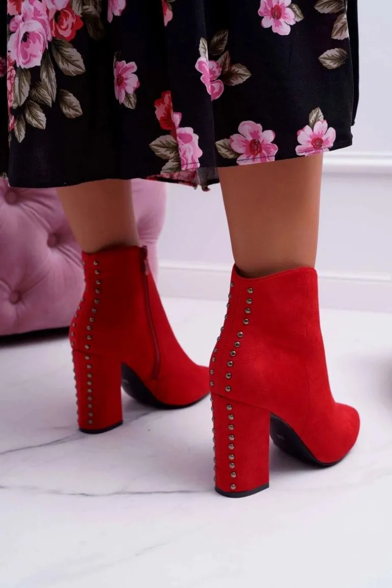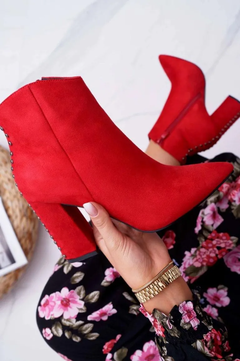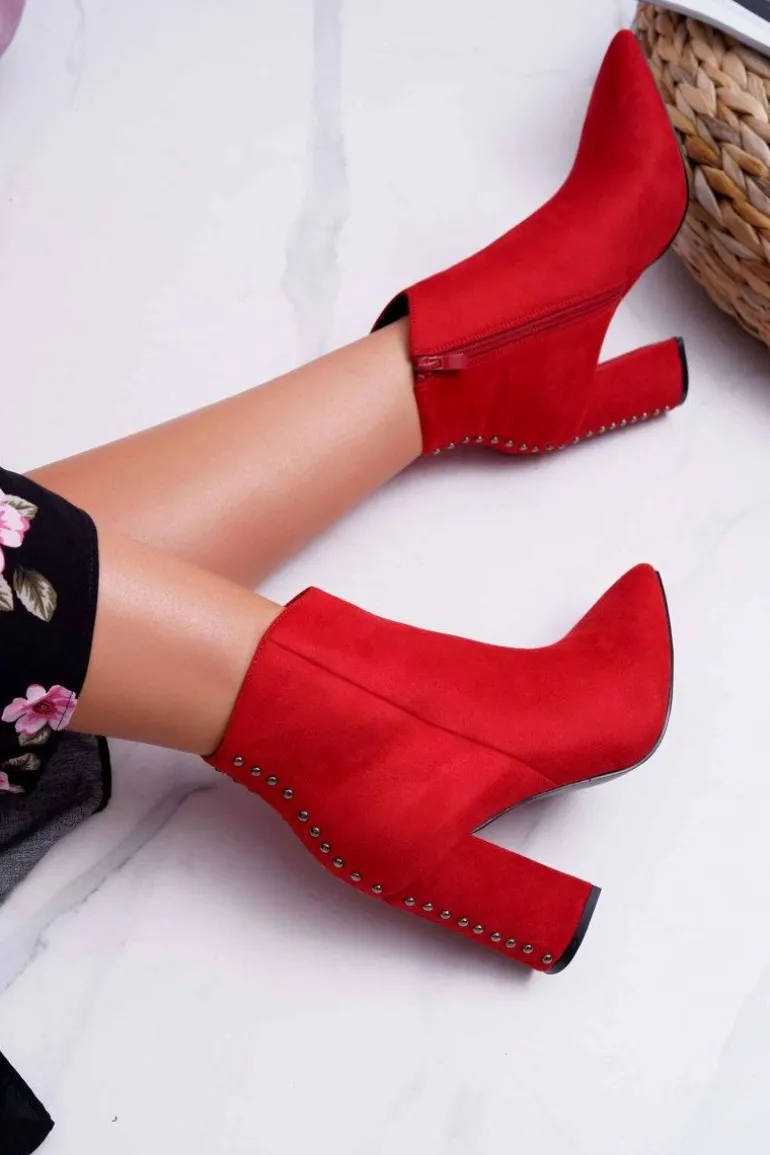Botki Damskie Na Obcasie Z Nitami W Szpic Czerwone Snack