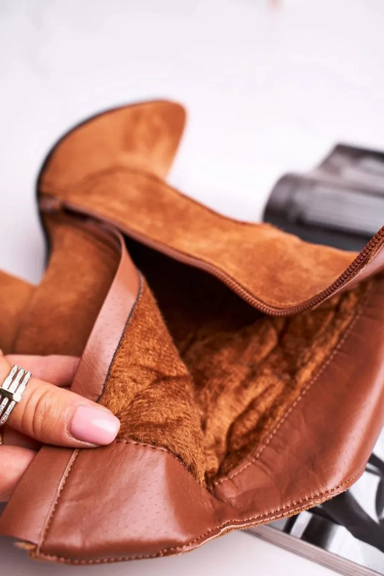 Botki Damskie Na Słupku Eko-Zamsz Camel Ecstasy