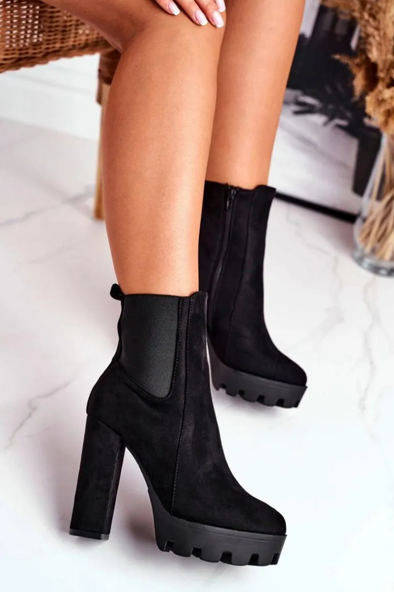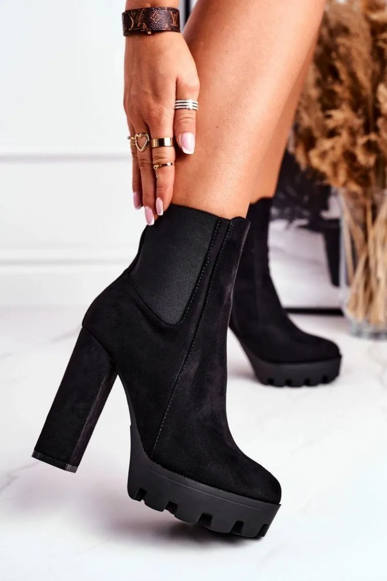 Botki Damskie Na Słupku Eko-Zamsz Czarne Juliet