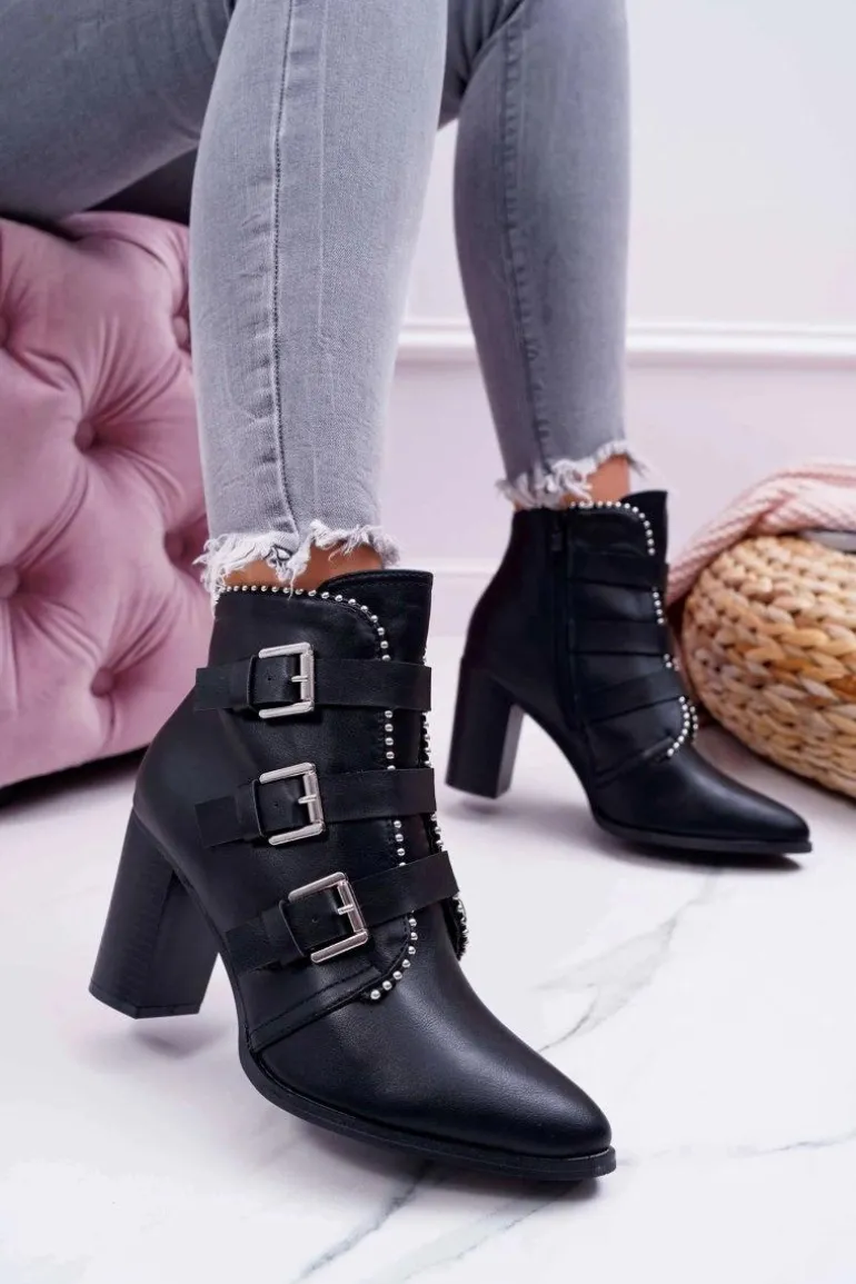 Botki Damskie Na Słupku Klamry Czarne Finbas