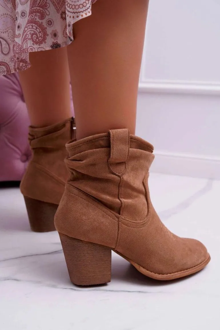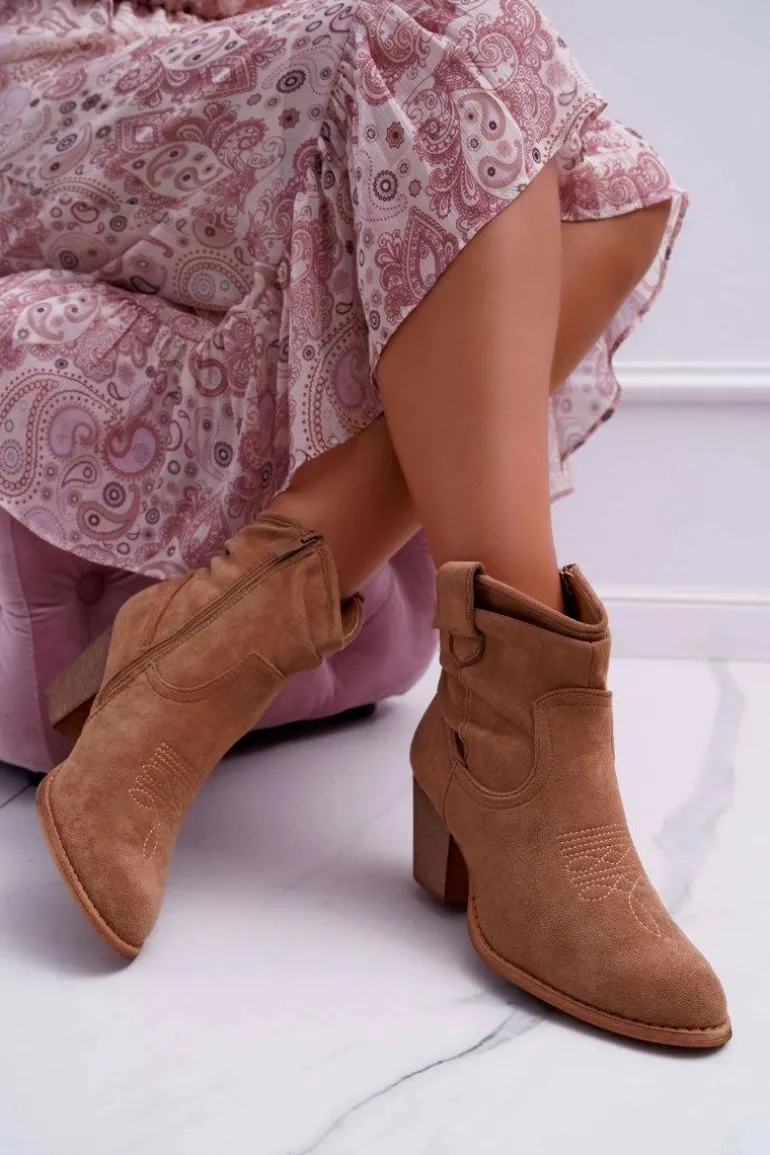 Botki Damskie Na Słupku Kowbojki Beżowe Maverick