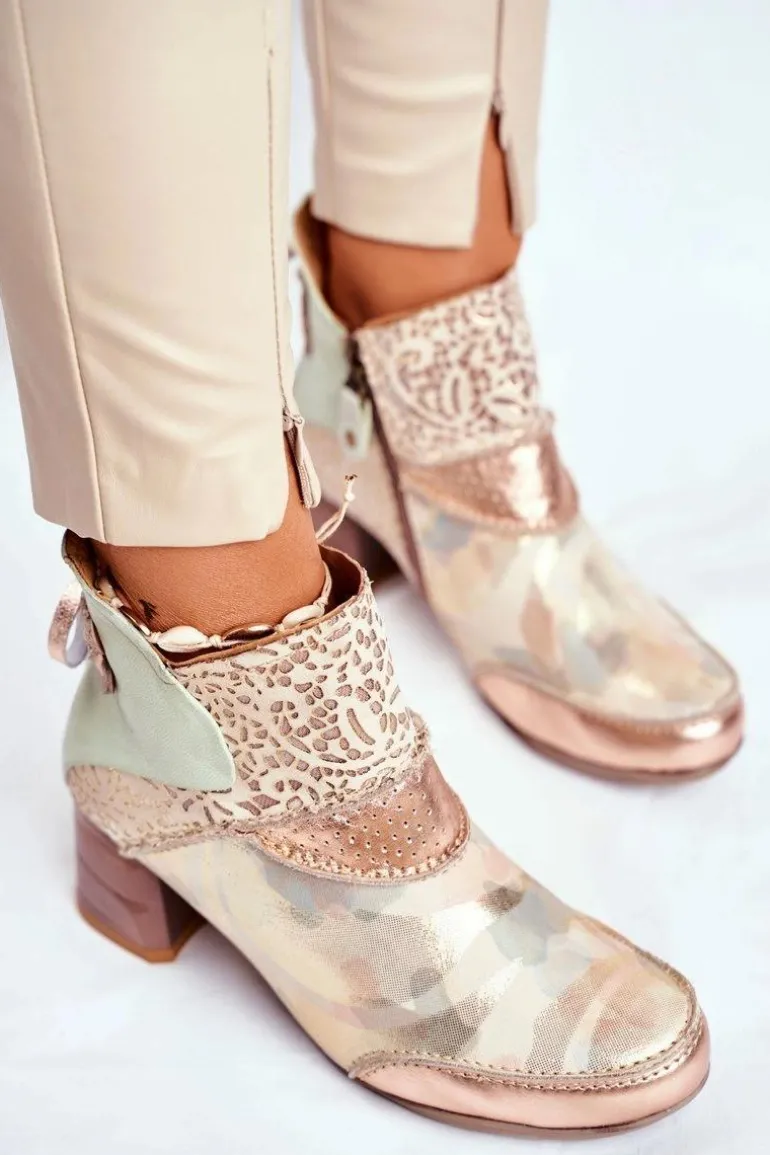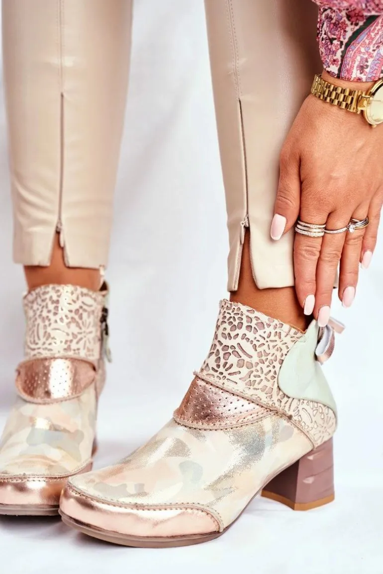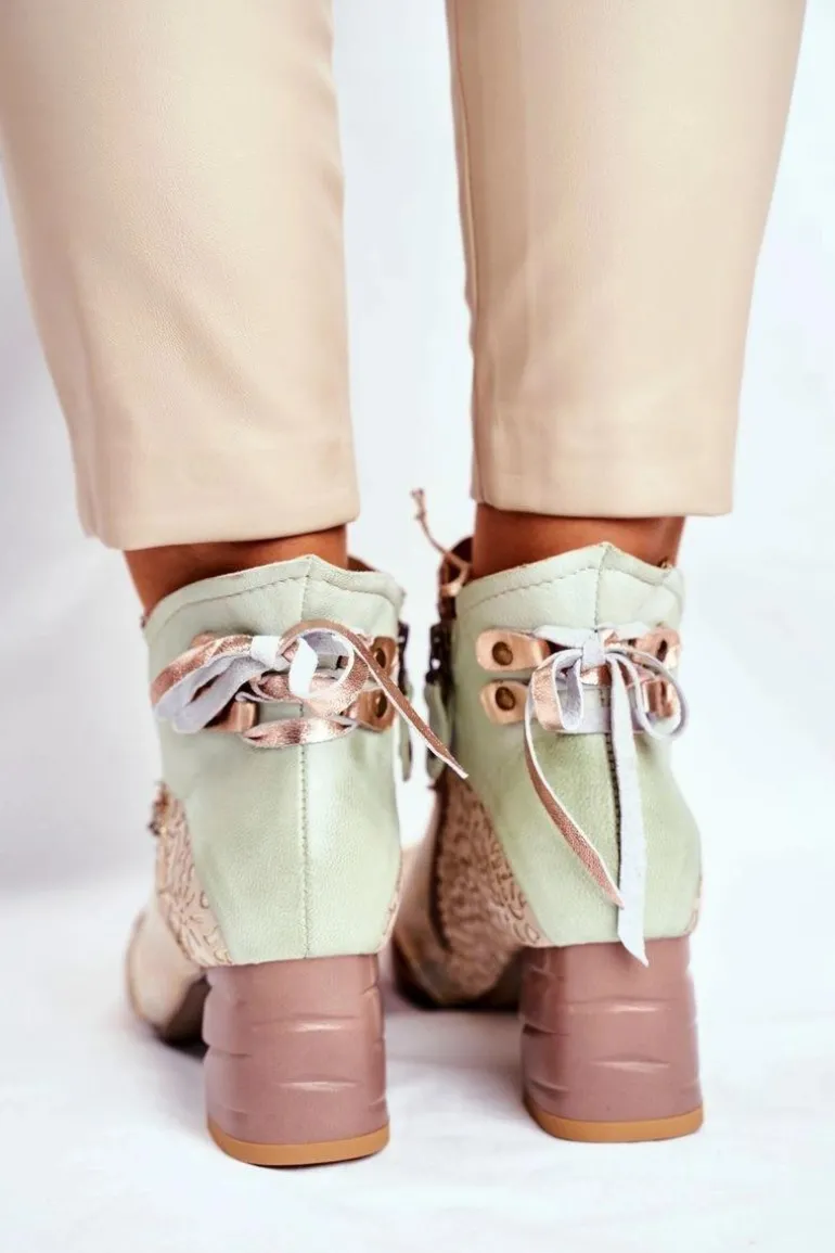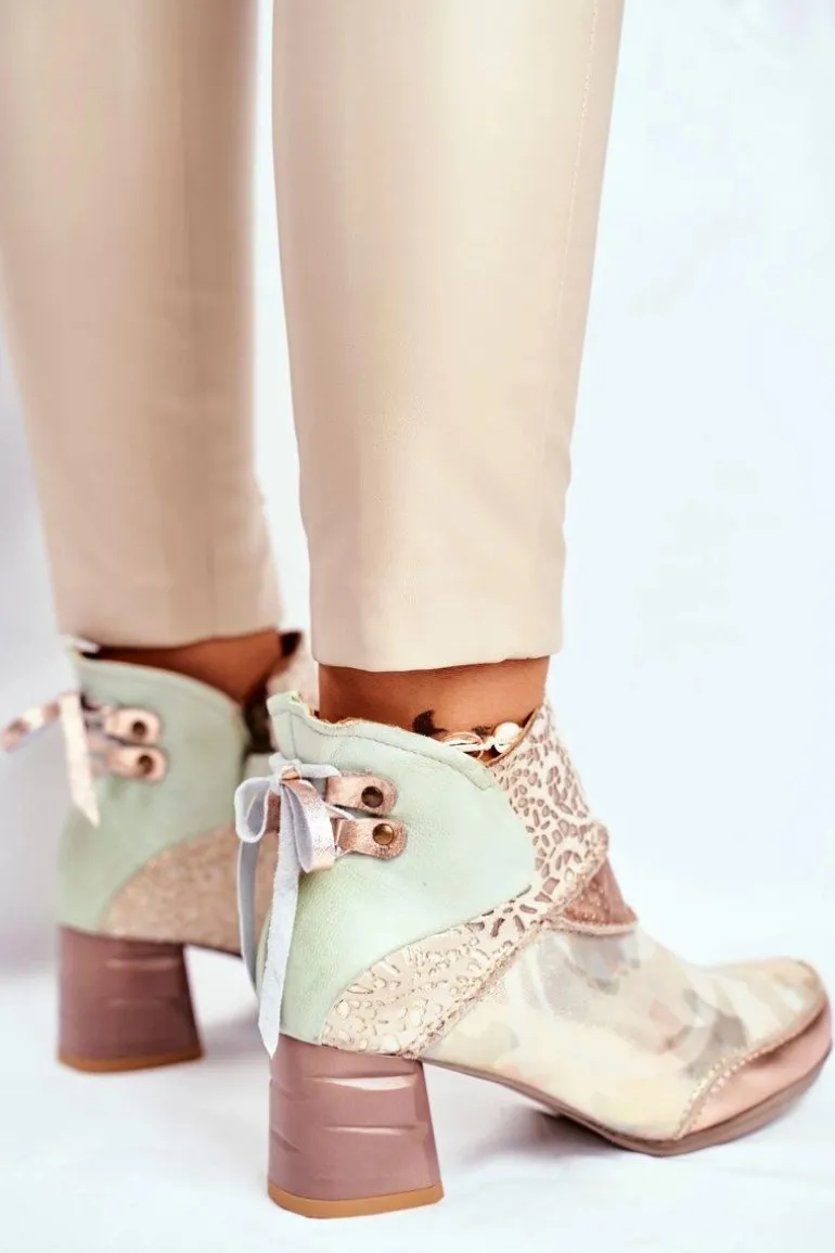 Botki Damskie Na Słupku Maciejka Beżowe 03410-04