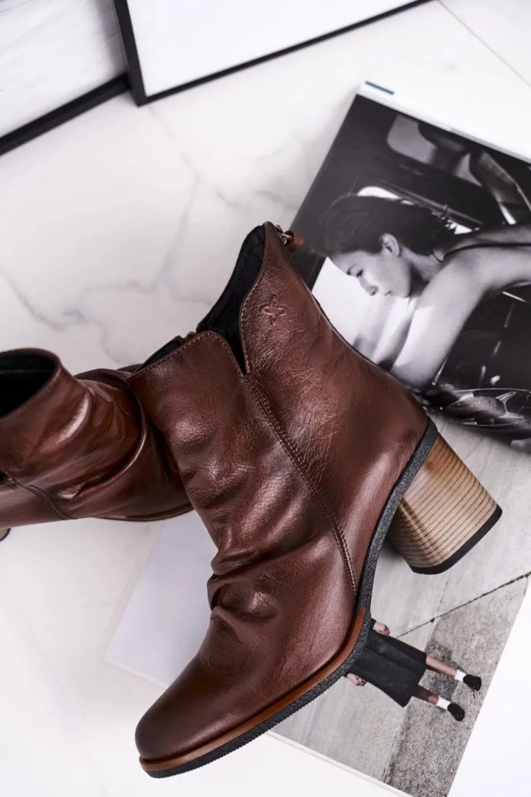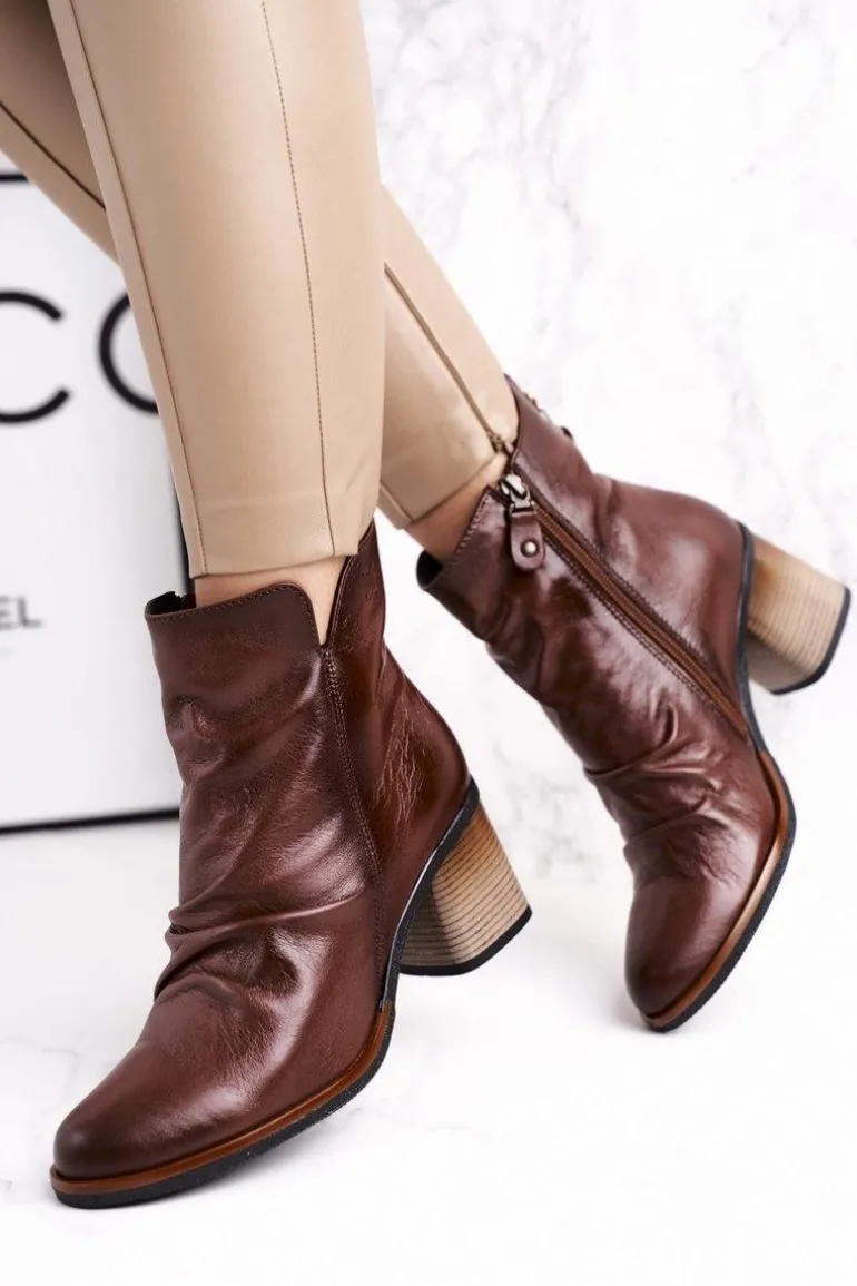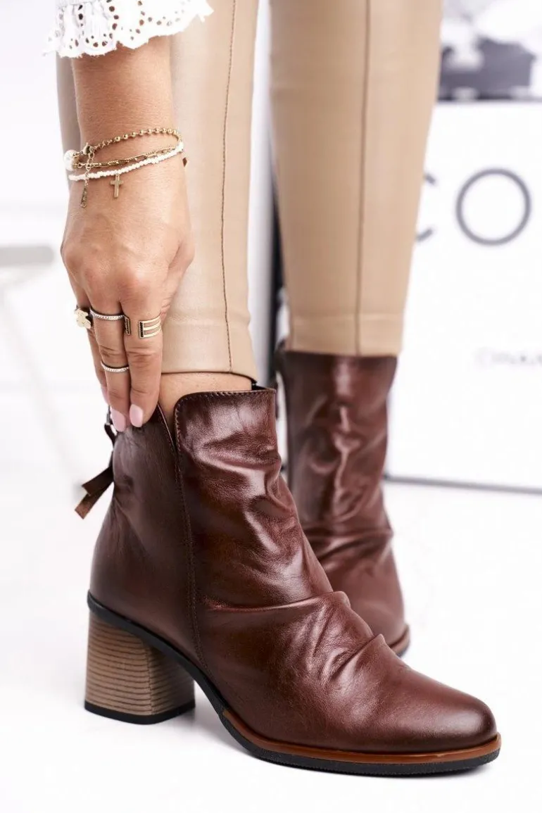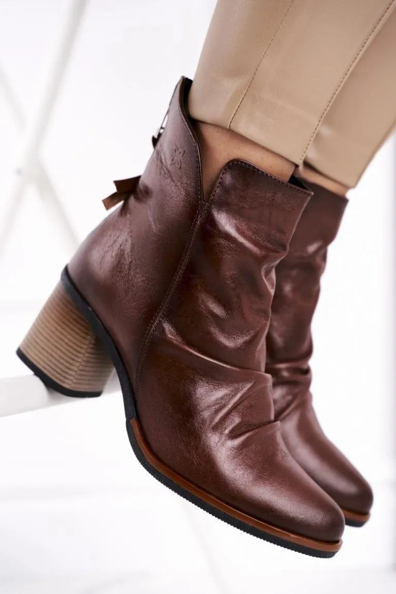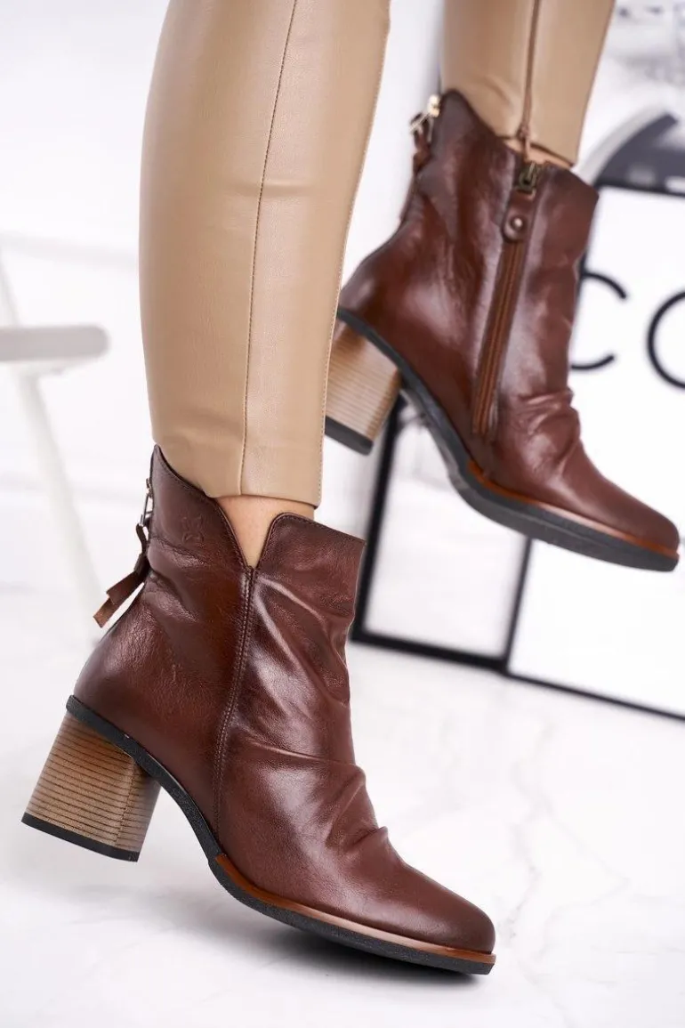Botki Damskie Na Słupku Maciejka Brązowe 04757-02