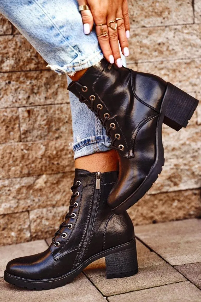 Tak, dobrze widzisz! Te cudowne botki mogą być Twoje! Wierch wykonany ze skóry ekologicznej. Delikatny słupek, który uniesie i wyeksponuje sylwetkę. Wnętrze pokryte ciepłym i miłym w dotyku kocem obuwniczym. O komfort zakładania zadba wszyty na boku suwak oraz sznurowadła dzięki, którym jeszcze lepiej dopasujemy swoje ulubione buty. Tym cudeńkom nie można się oprzeć <3 Przy wyborze rozmiaru prosimy sugerować się tabelą rozmiarów.