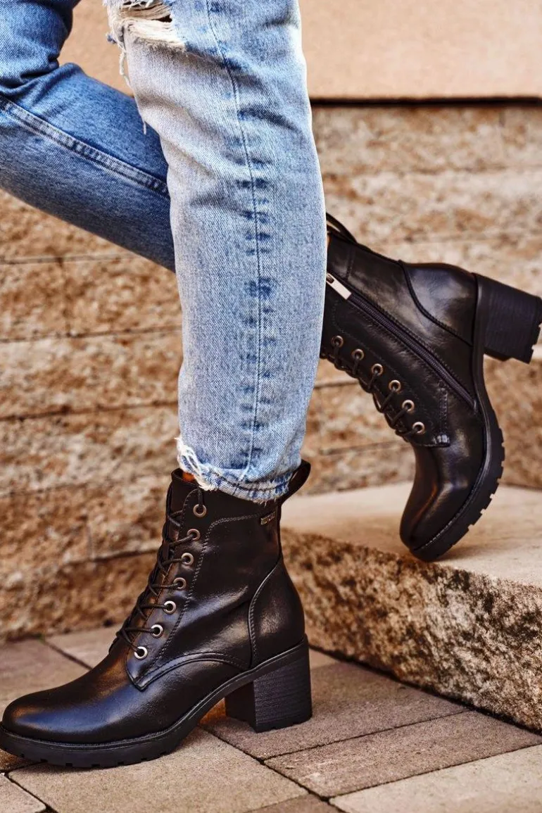 Botki Damskie Na Słupku Ocieplane Czarne Fiber