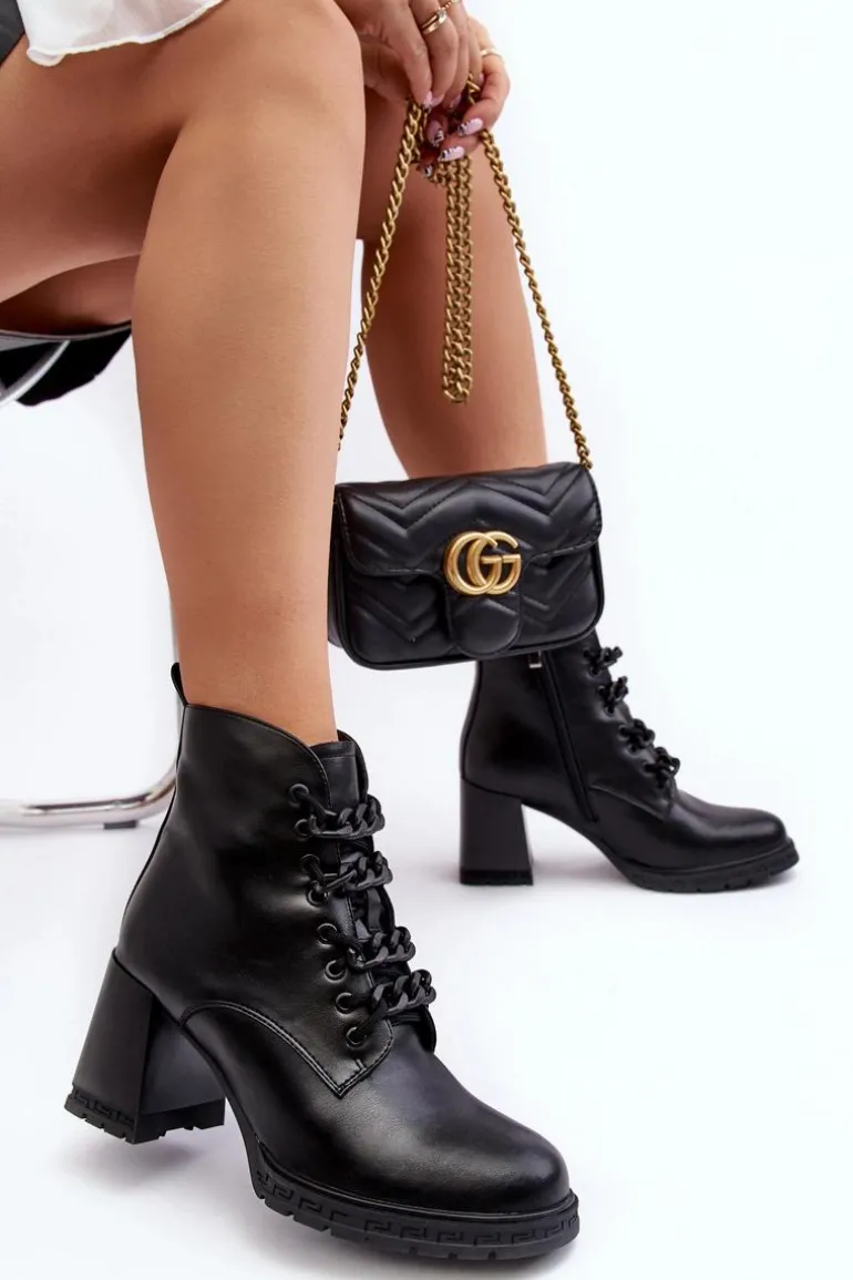 Damskie botki z cholewką za kostkę. Sznurowane oraz dodatkowo zapinane na suwak z boku. Osadzone na obcasie w postaci stabilnego słupka. Środek ocieplony kocem obuwniczym. Noski zaokrąglone. Usztywniony zapiętek. Model ten dopasujesz do wielu jesiennych stylizaji! Przy wyborze rozmiaru prosimy sugerować się tabelą rozmiarów.