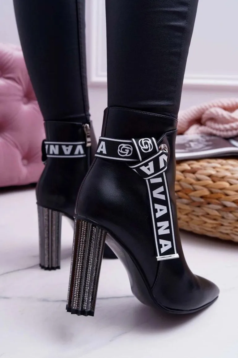 Botki Damskie Na Słupku W Szpic Czarne Macada