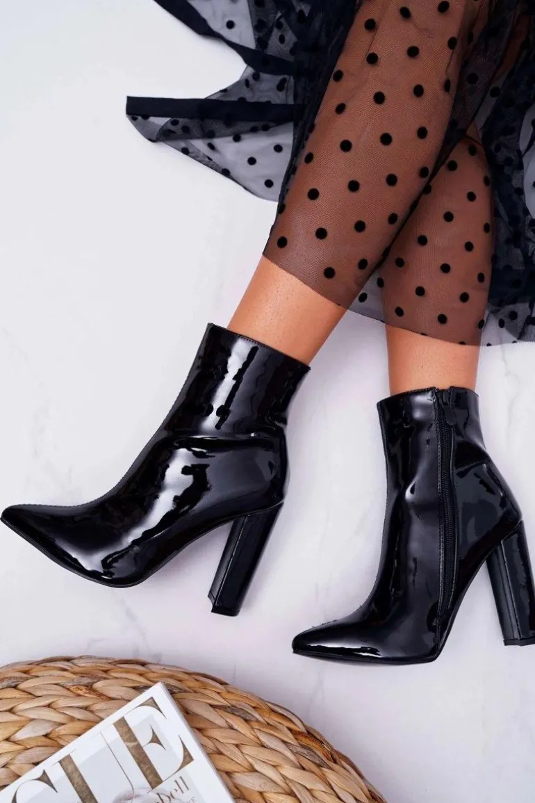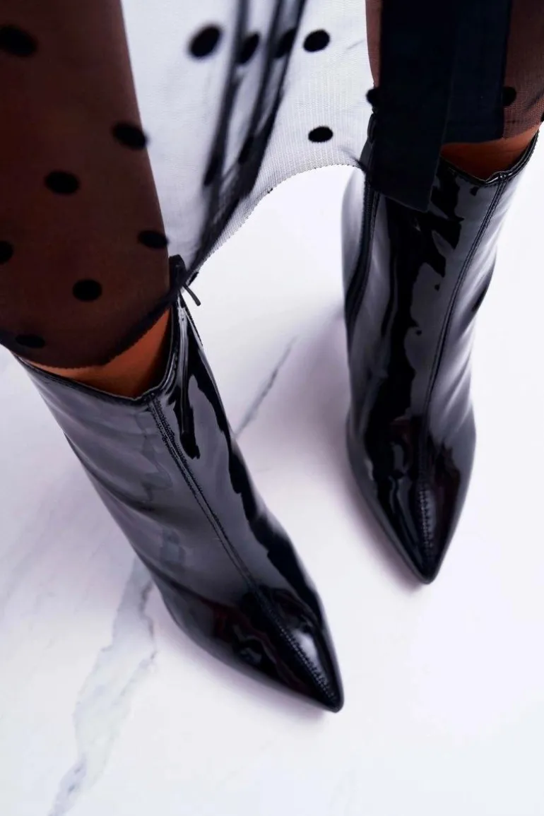 Botki Damskie Na Słupku W Szpic Lakierowane Czarne Demens