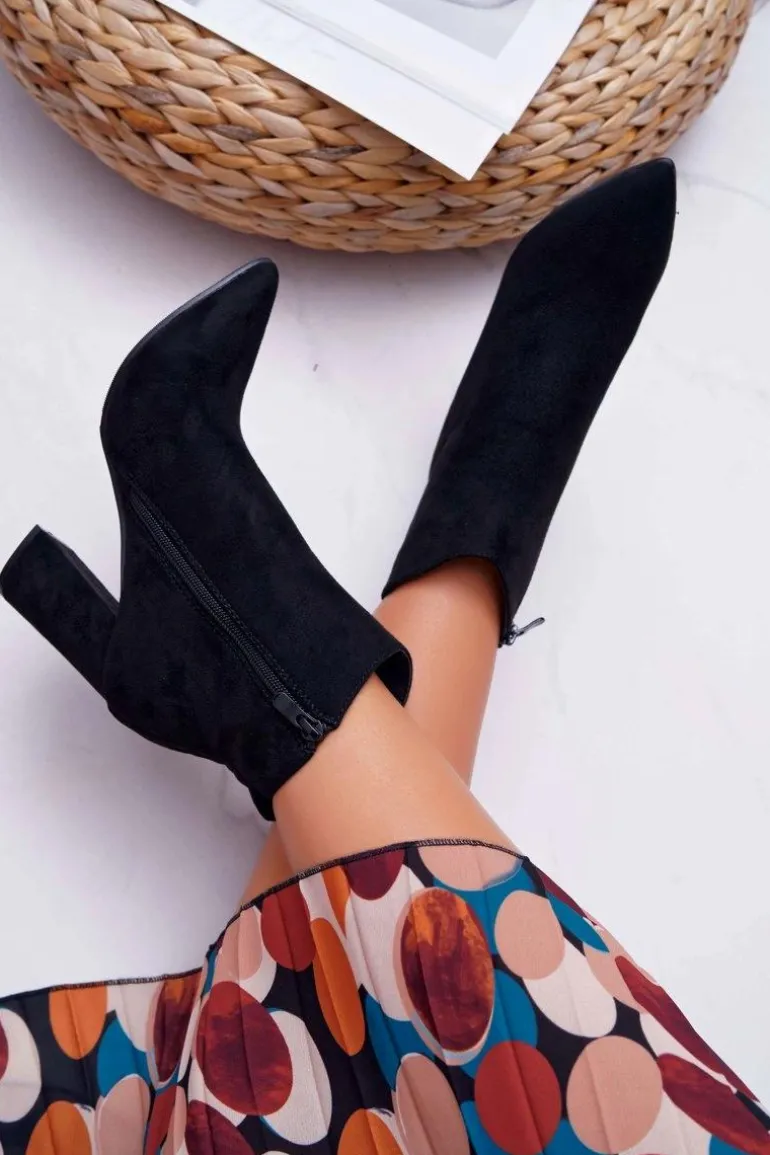 Botki Damskie Na Słupku W Szpic Zamszowe Czarne Summe