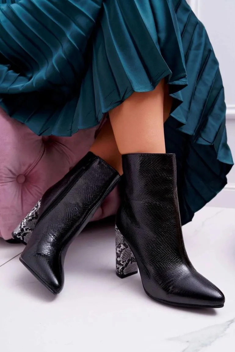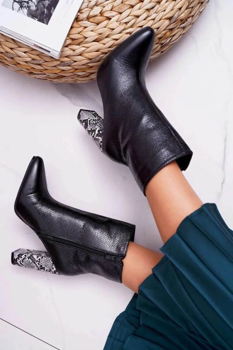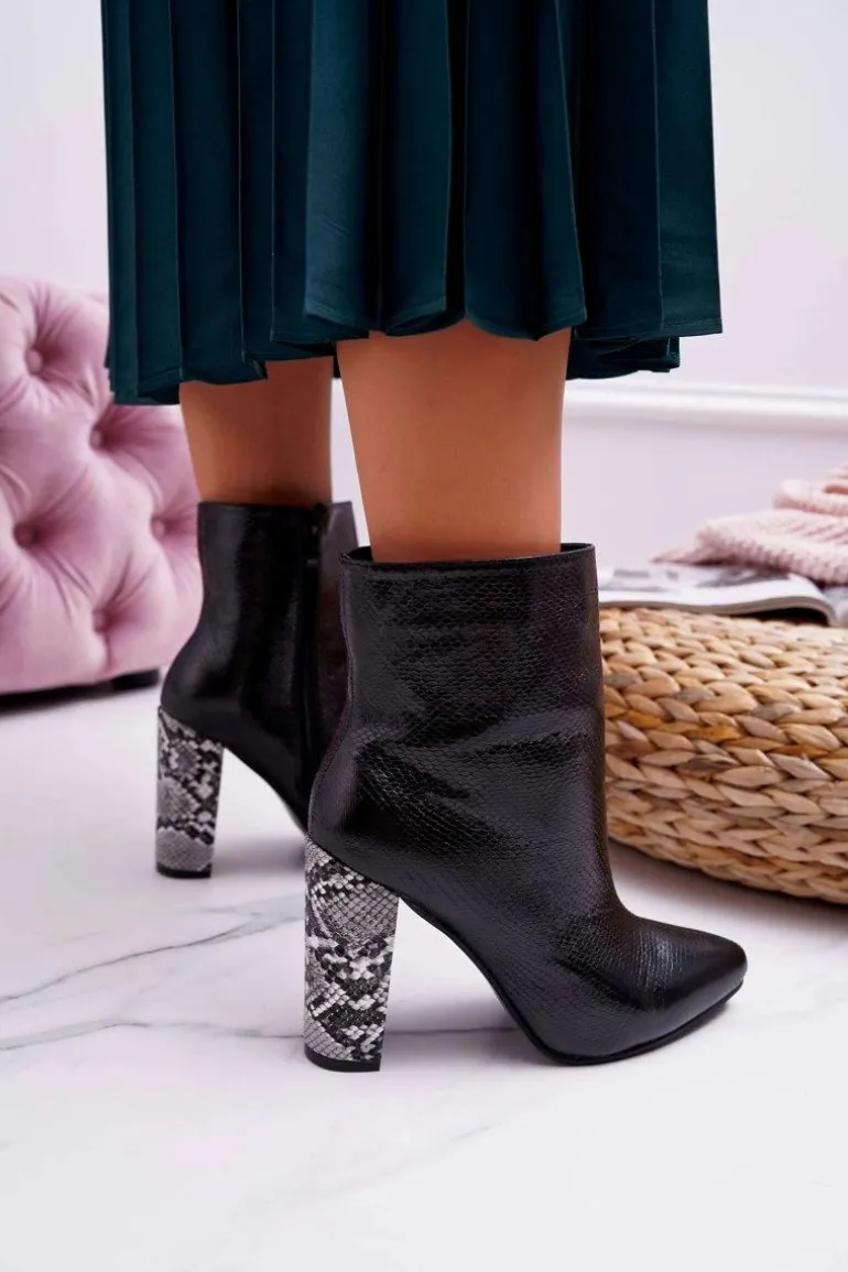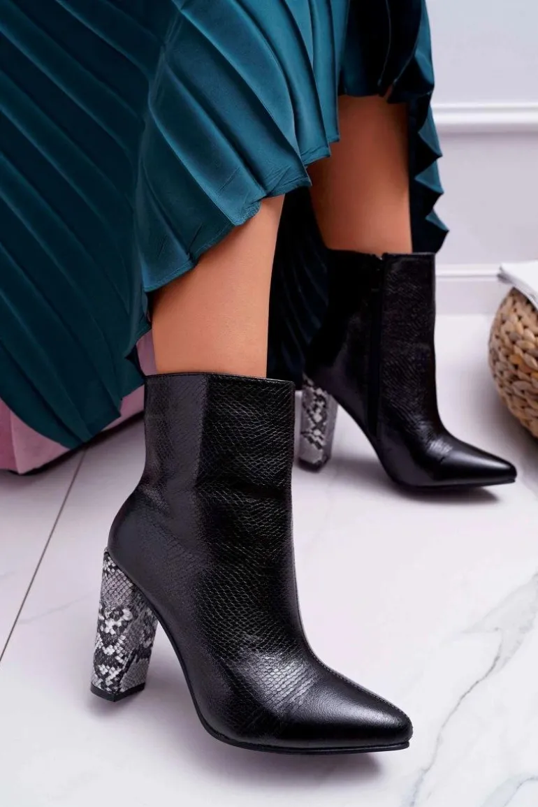 Botki Damskie Na Słupku Wężowy Motyw Czarne Vernel