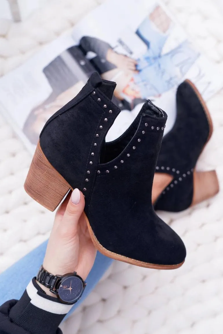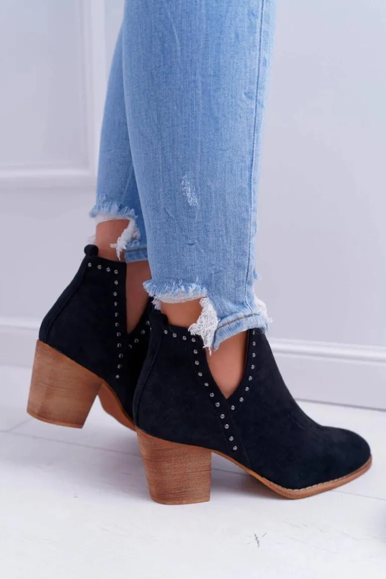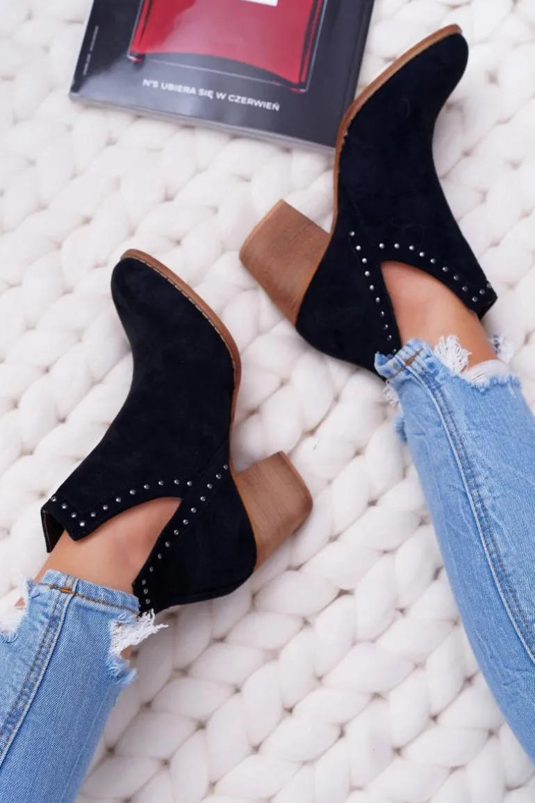 Botki Damskie Na Słupku Wsuwane z Wycięciami Czarne ManiMani