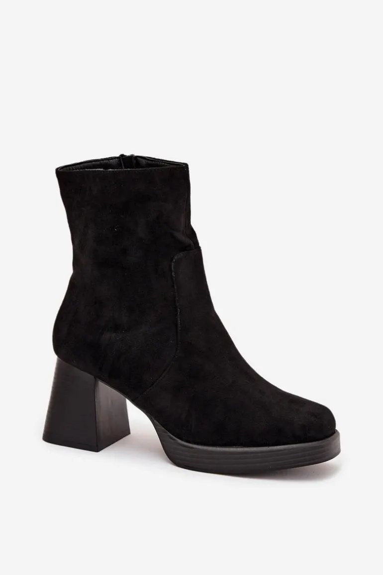 Botki damskie z eko zamszu na słupkowym obcasie to elegancki wybór na chłodniejsze dni. Cholewka sięga za kostkę. Zapinane na zamek, co zapewnia szybkie zakładanie i zdejmowanie obuwia. Noski delikatnie zaokrąglone. Stylowy fason sprawia, że te botki doskonale komponują się zarówno z sukienkami, jak i spódnicami, tworząc eleganckie i kobiece stylizacje. Przy wyborze rozmiaru prosimy sugerować się tabelą rozmiarów.