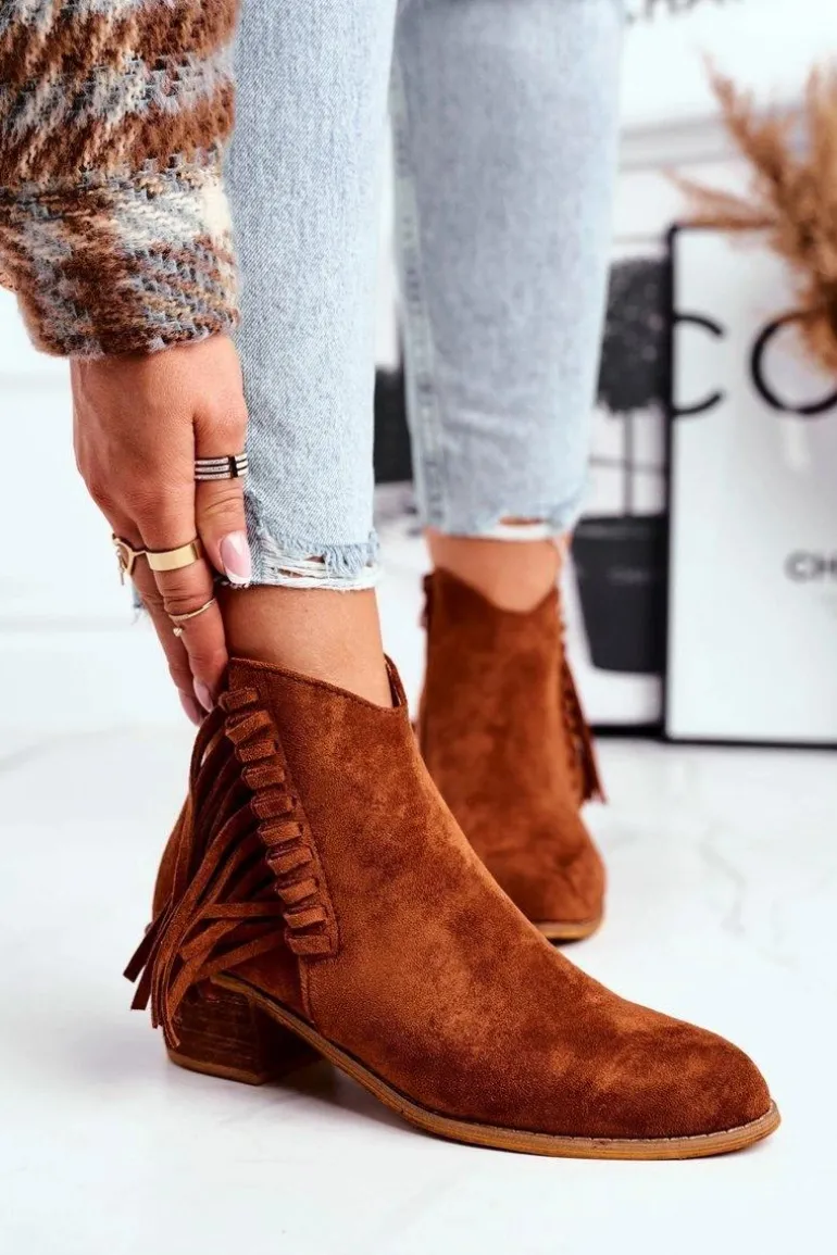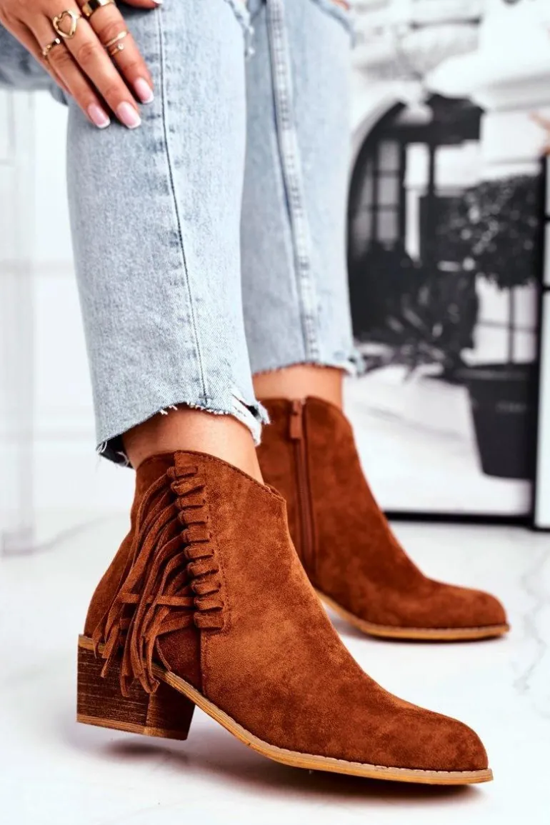Botki Damskie Na Słupku Z Frędzlami Kowbojki Camel Mirage