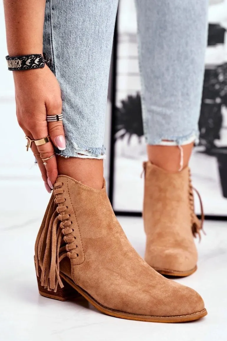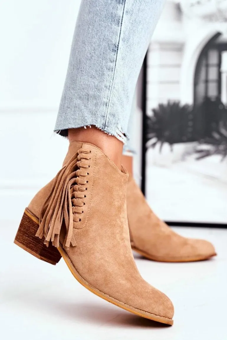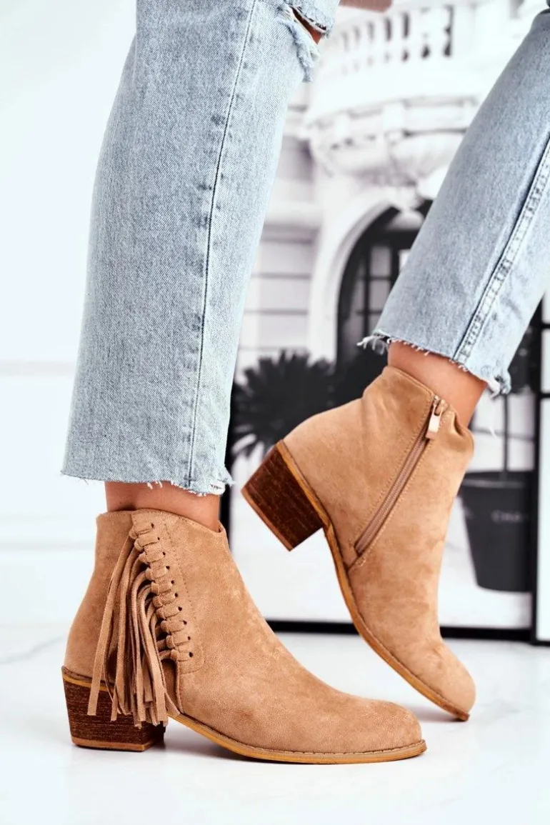 Botki Damskie Na Słupku Z Frędzlami Kowbojki Khaki Mirage