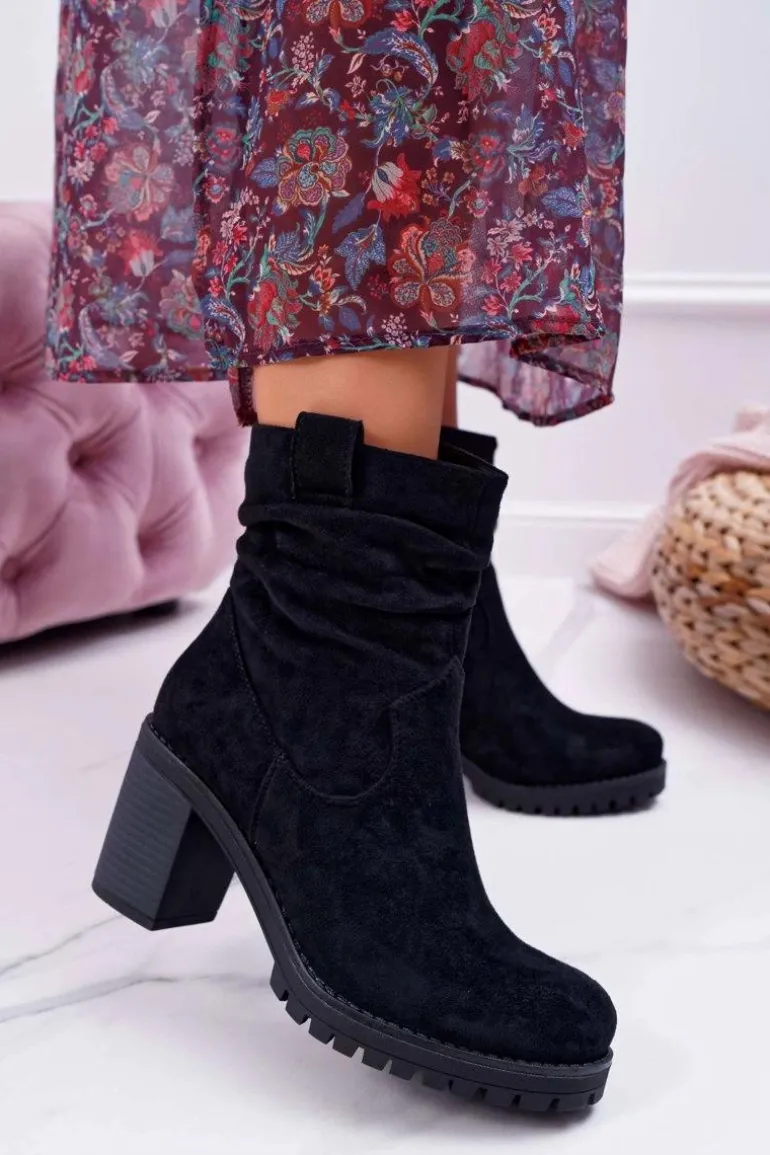Botki Damskie Na Słupku Zamsz Czarne Celma