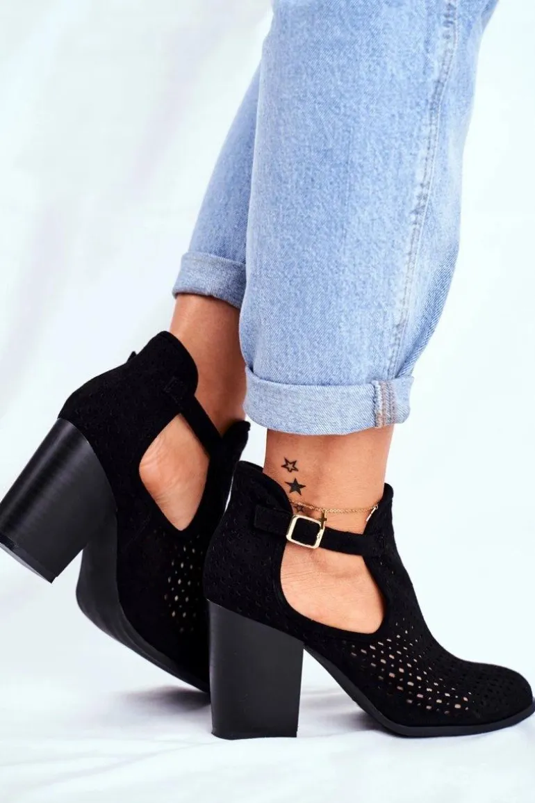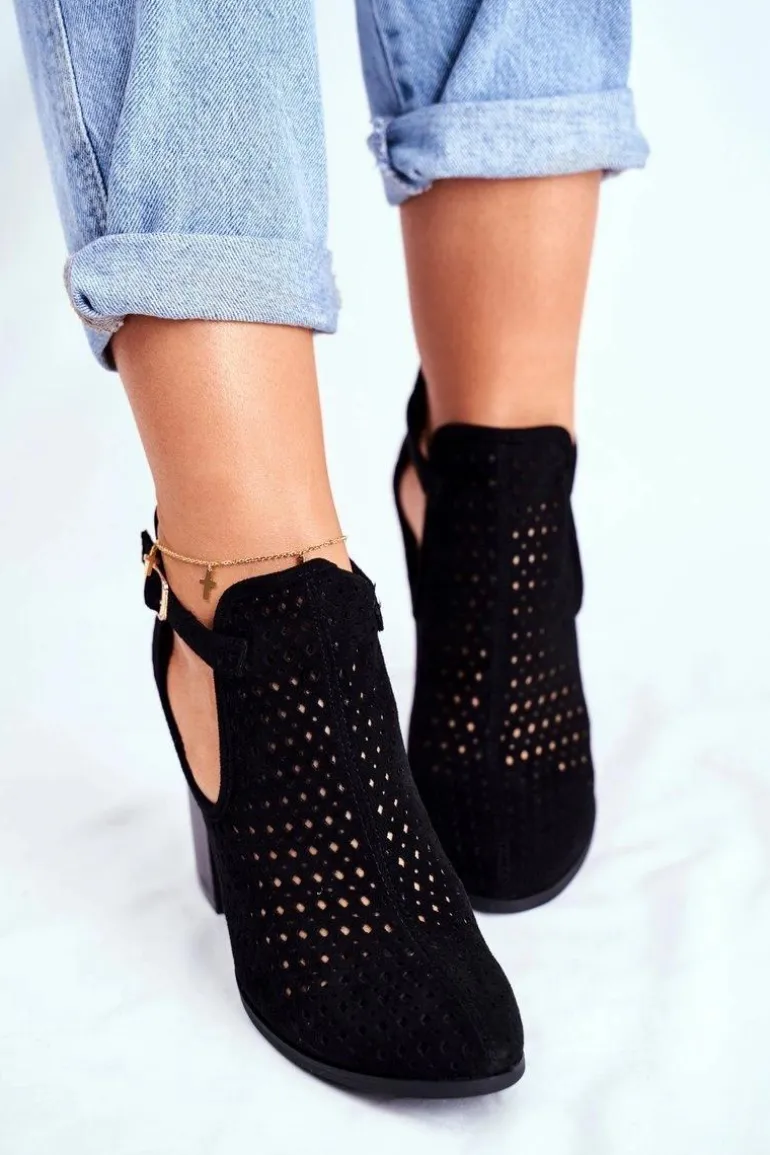 Botki Damskie Na Słupku Zamszowe Ażurowe Czarne Morrena