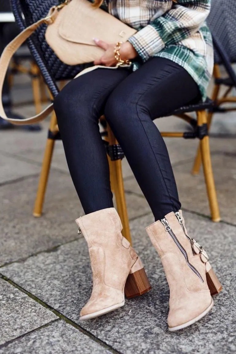 Botki Damskie Na Słupku Zamszowe Beżowe Anabelle