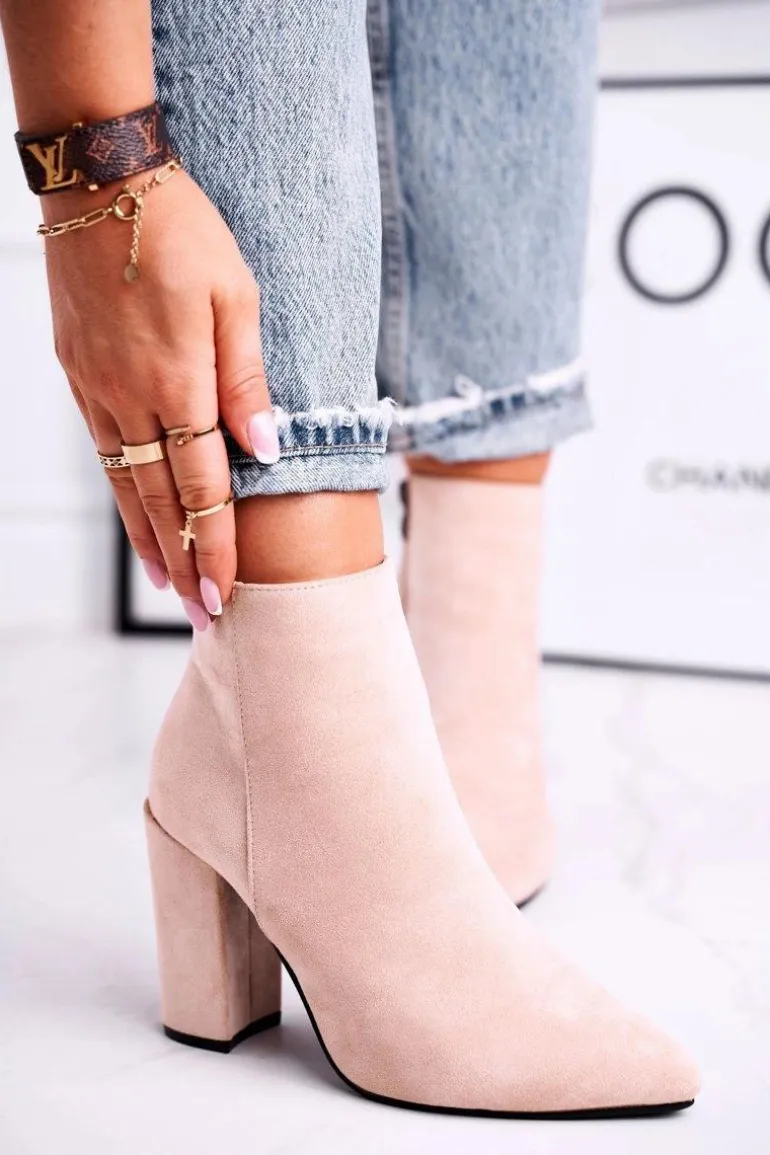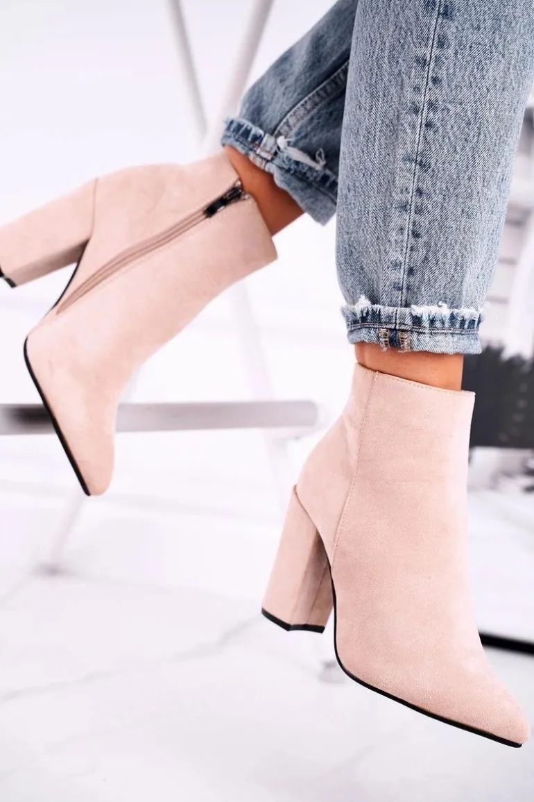 Botki Damskie na Słupku Zamszowe Beżowe Sharks