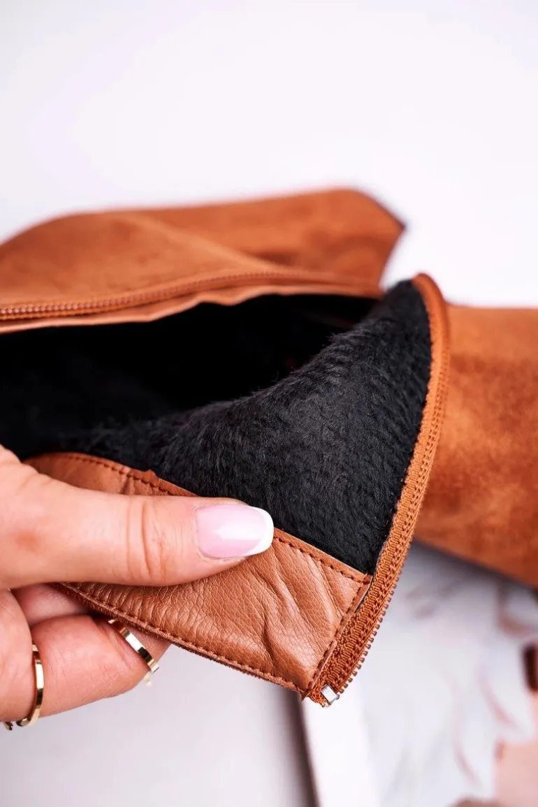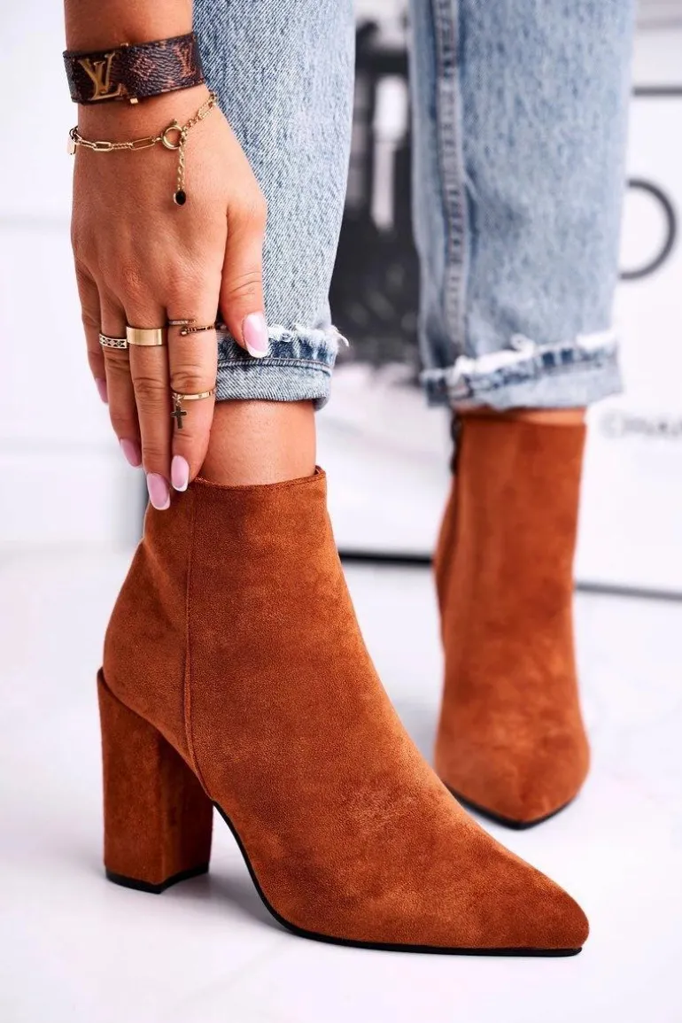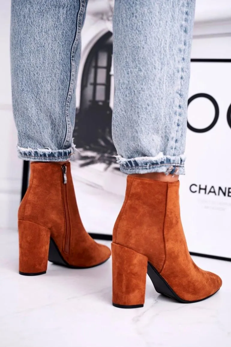 Botki Damskie na Słupku Zamszowe Camel Sharks