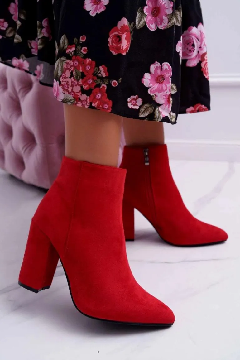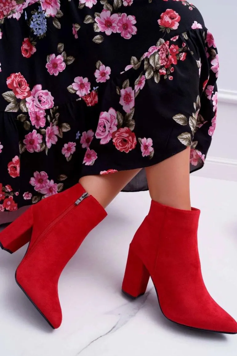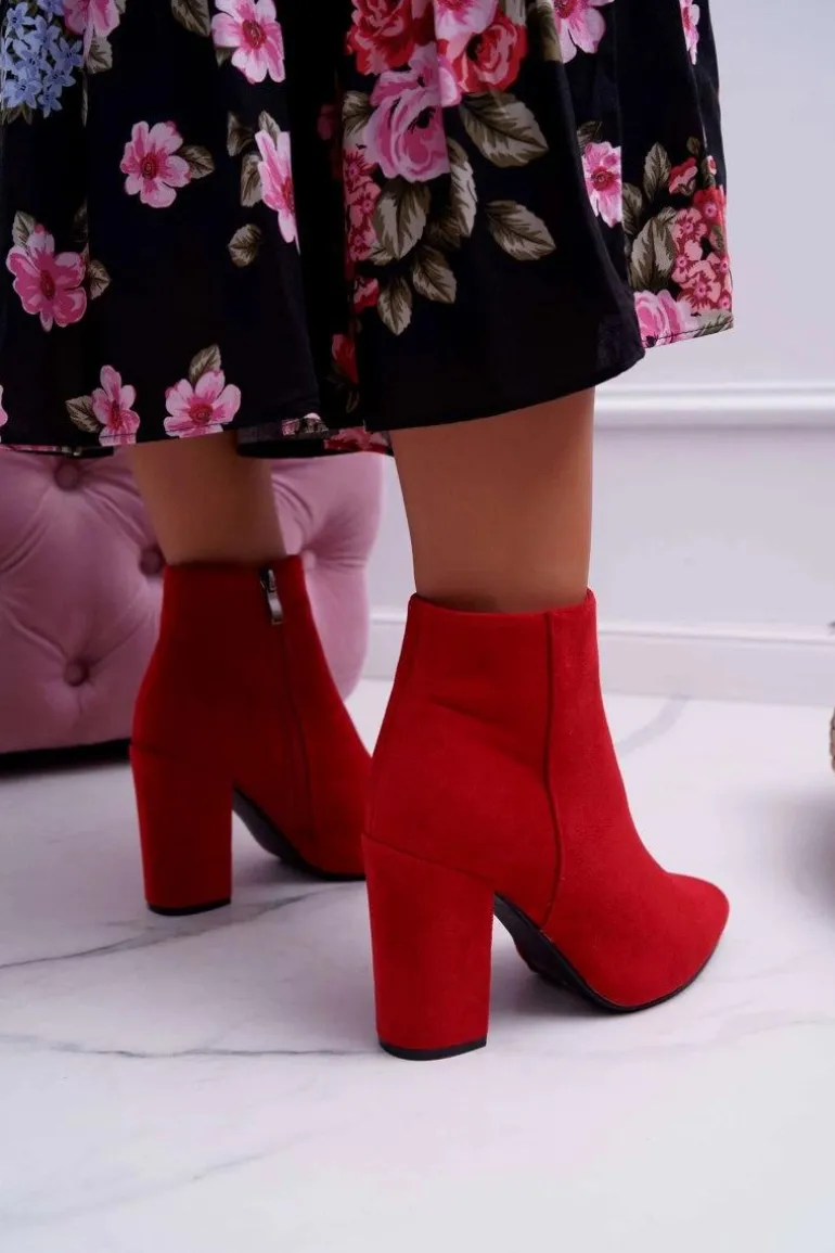 Botki Damskie na Słupku Zamszowe Czerwone Sharks