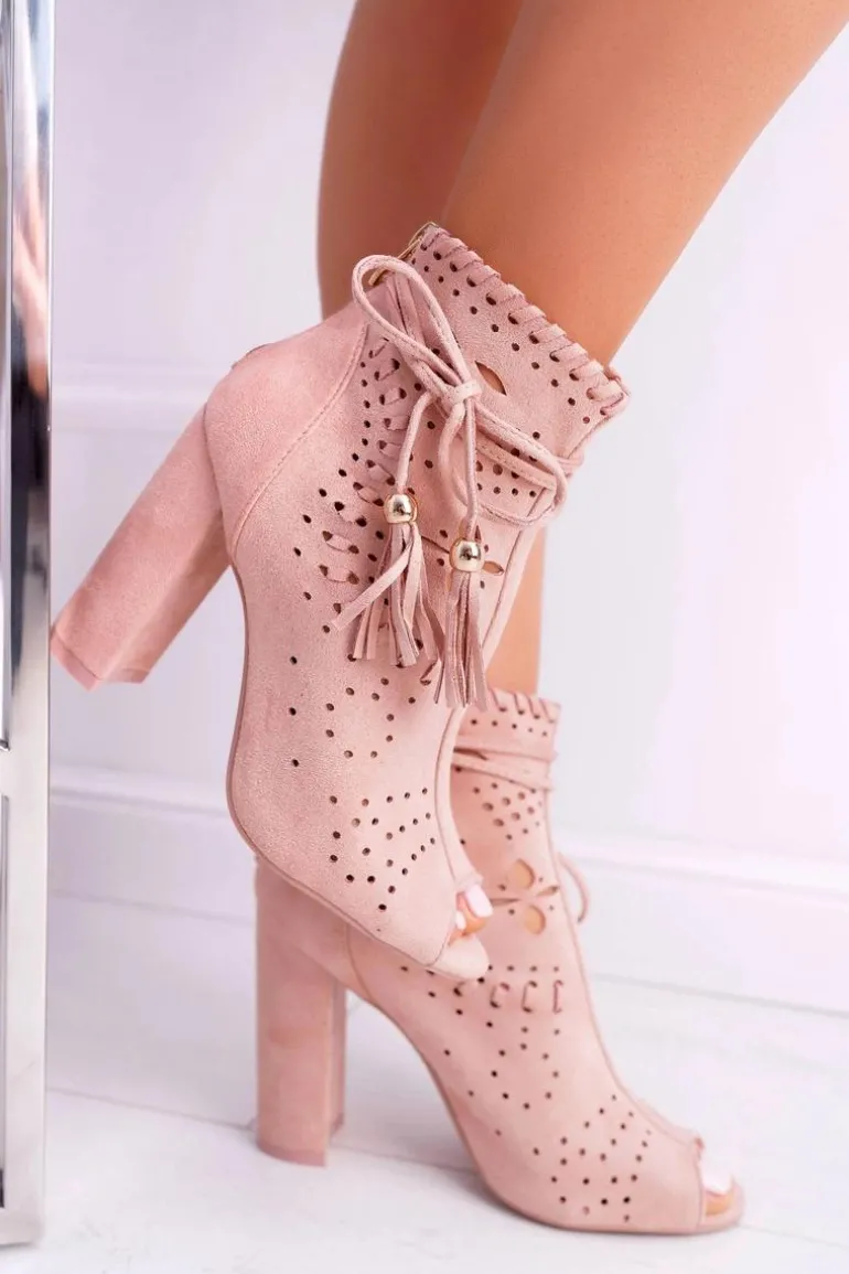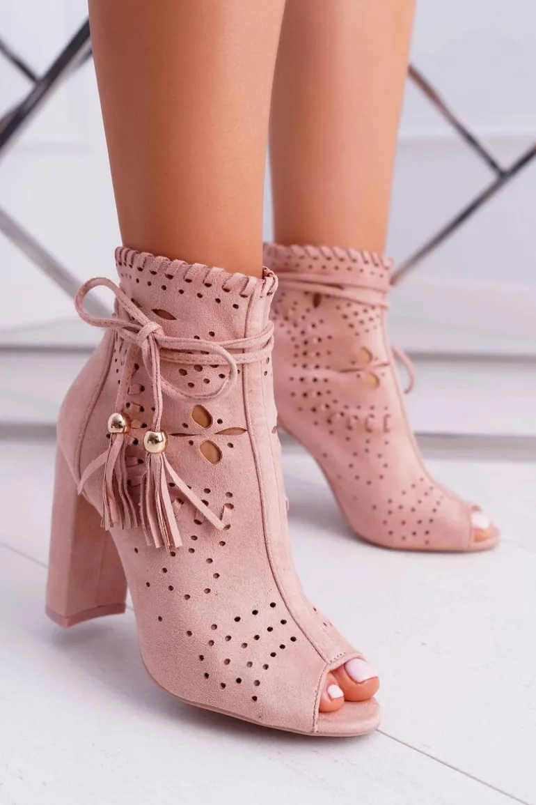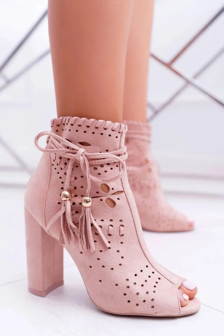 Botki Damskie Na Słupku Zamszowe Różowe Corinne