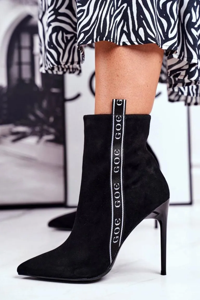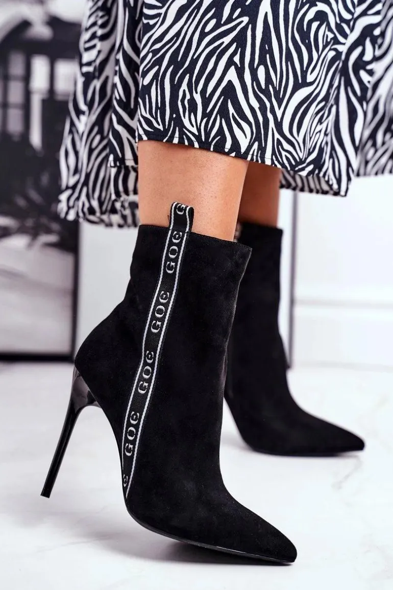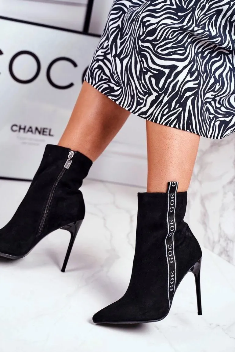 Botki Damskie Na Szpilce Zamszowe Czarne GG2N3005