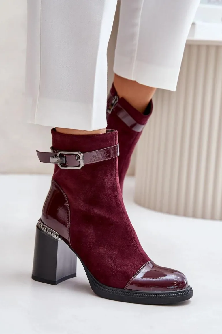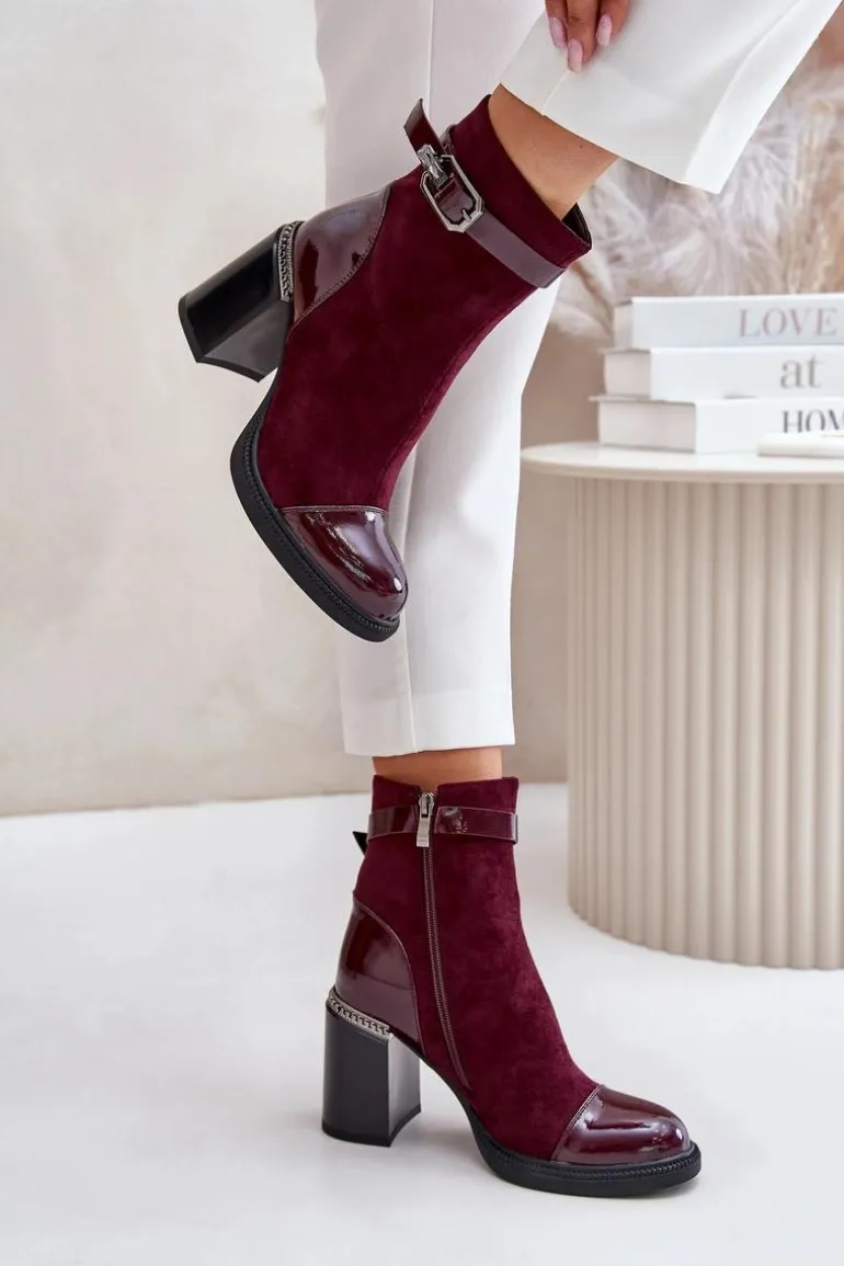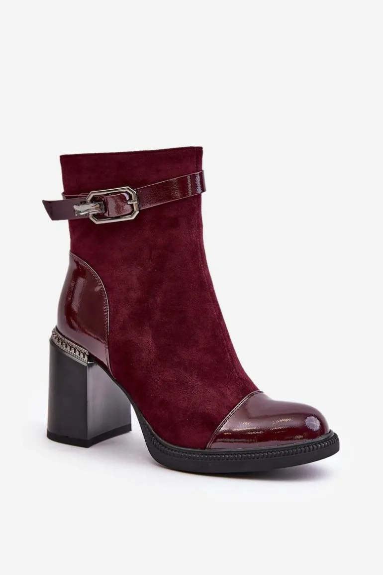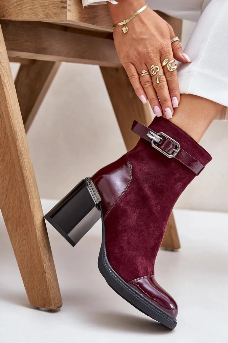 Eleganckie botki wykonane z eko skóry. Model ten wyróżnia ozdobny element przy obcasie oraz klamra, która nadaje elegancji. Wnętrze ocieplane dla dodatkowego komfortu w chłodniejsze dni. Model zapinany na zamek, z noskami w migdał. Idealne do wielu stylizacji! Przy wyborze rozmiaru prosimy sugerować się tabelą rozmiarów.