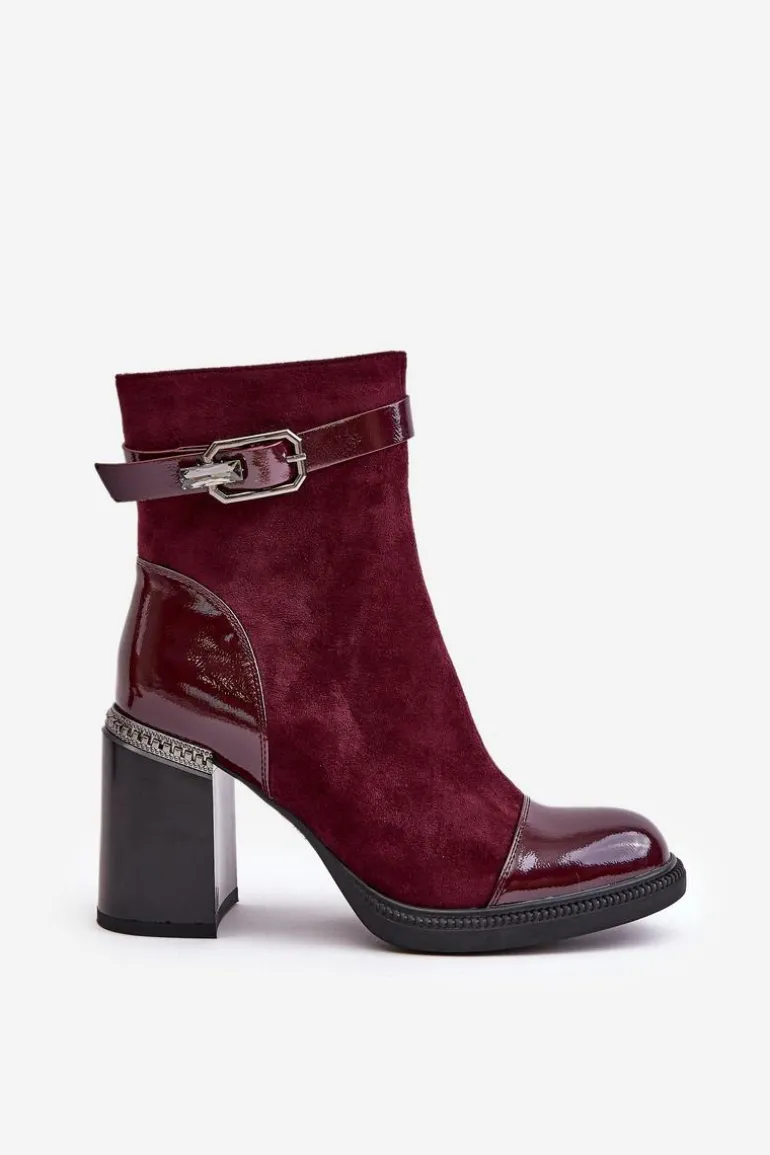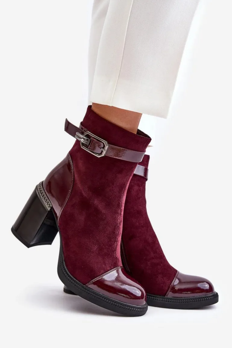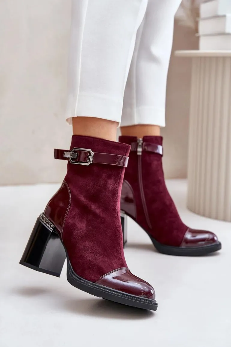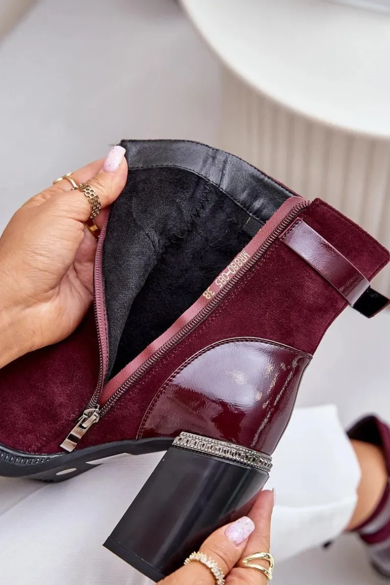 Eleganckie botki wykonane z eko skóry. Model ten wyróżnia ozdobny element przy obcasie oraz klamra, która nadaje elegancji. Wnętrze ocieplane dla dodatkowego komfortu w chłodniejsze dni. Model zapinany na zamek, z noskami w migdał. Idealne do wielu stylizacji! Przy wyborze rozmiaru prosimy sugerować się tabelą rozmiarów.