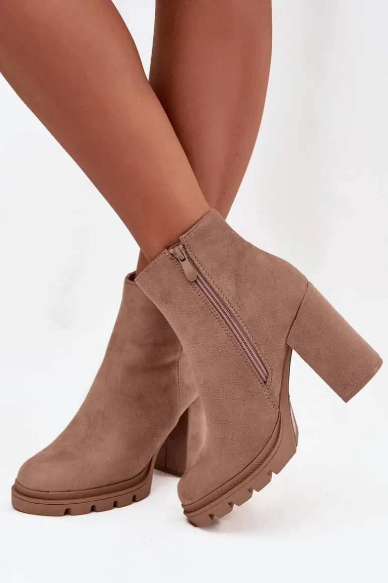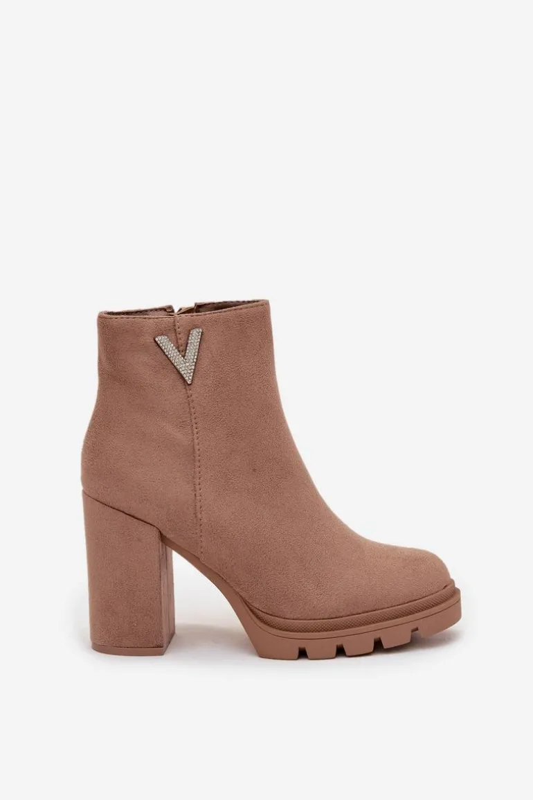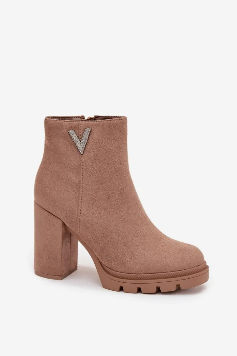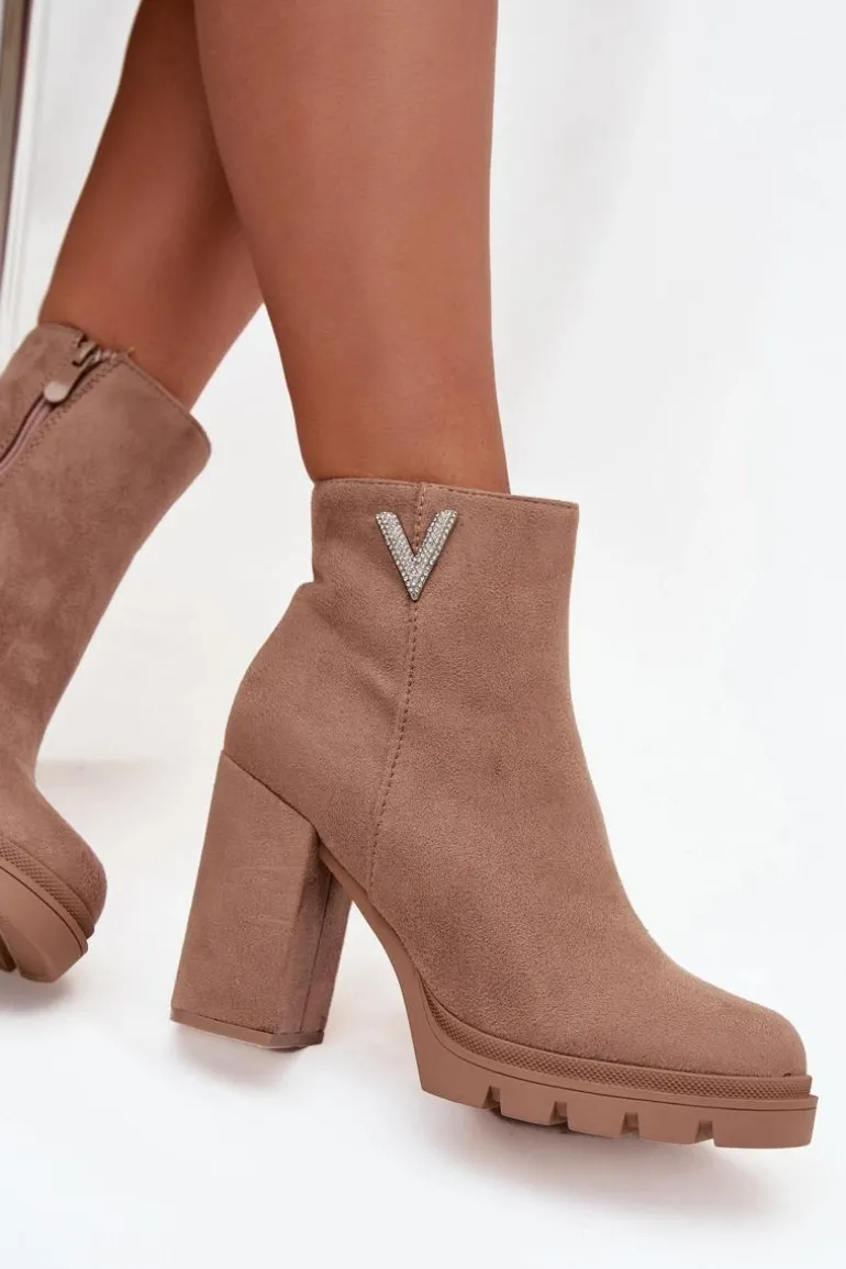Botki damskie z eko zamszu to elegancka propozycja dla kobiet ceniących styl i wygodę. Osadzone na stabilnym obcasie typu słupek, zapewniają komfort noszenia i subtelnie podkreślają sylwetkę. Zaokrąglone noski nadają im klasycznego charakteru, a praktyczny zamek ułatwia zakładanie i zdejmowanie. Uwagę przyciąga błyszczący detal w kształcie litery V umieszczony z boku cholewki, który dodaje oryginalności i modnego akcentu. To model doskonały zarówno do codziennych, jak i eleganckich stylizacji.