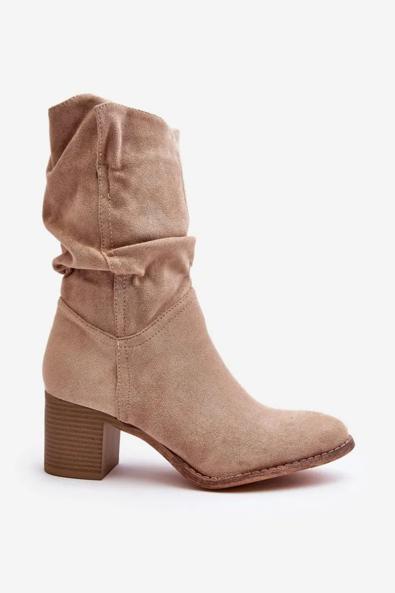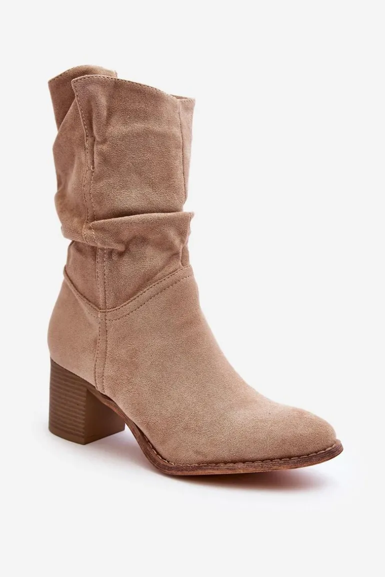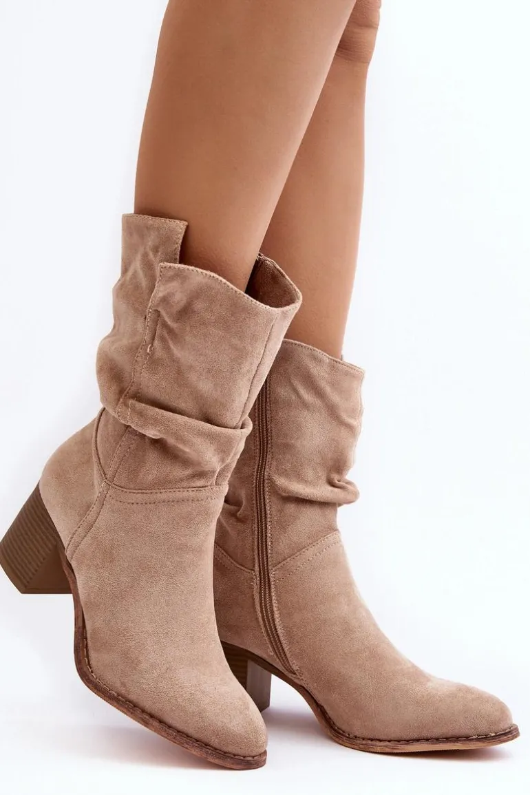 Damskie botki z marszczoną cholewką za kostkę. Wykonane z eko zamszu. Osadzone na obcasie w postaci słupka. Noski w migdał. Środek ocieplony kocem obuwniczym. Zapinane na suwak z boku. Model ten dopasujesz do wielu stylizacji. Koniecznie powinnaś je mieć! Przy wyborze rozmiaru prosimy sugerować się tabelą rozmiarów.