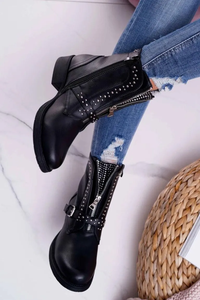 Mamy dla Was coś wyjątkowego! Botki workery z klamrami i nitami, które świetnie wpasują się w nadchodzące trendy. Wykonane z wysokiej jakości skóry ekologicznej. Zdobienia w postaci nitów i suwaka nadają im niesamowitego mocnego charakteru. Wnętrze pokryte kocem obuwniczym. Przy wyborze rozmiaru prosimy sugerować się tabelą rozmiarów.