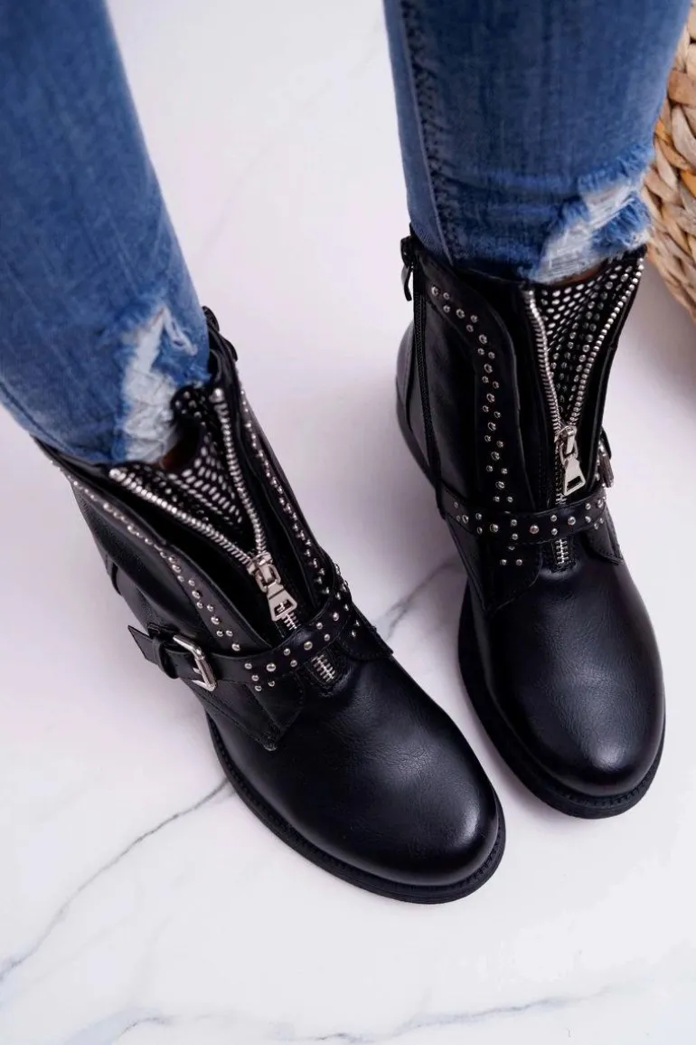 Botki Damskie Ozdobny Suwak Czarne Hard Way