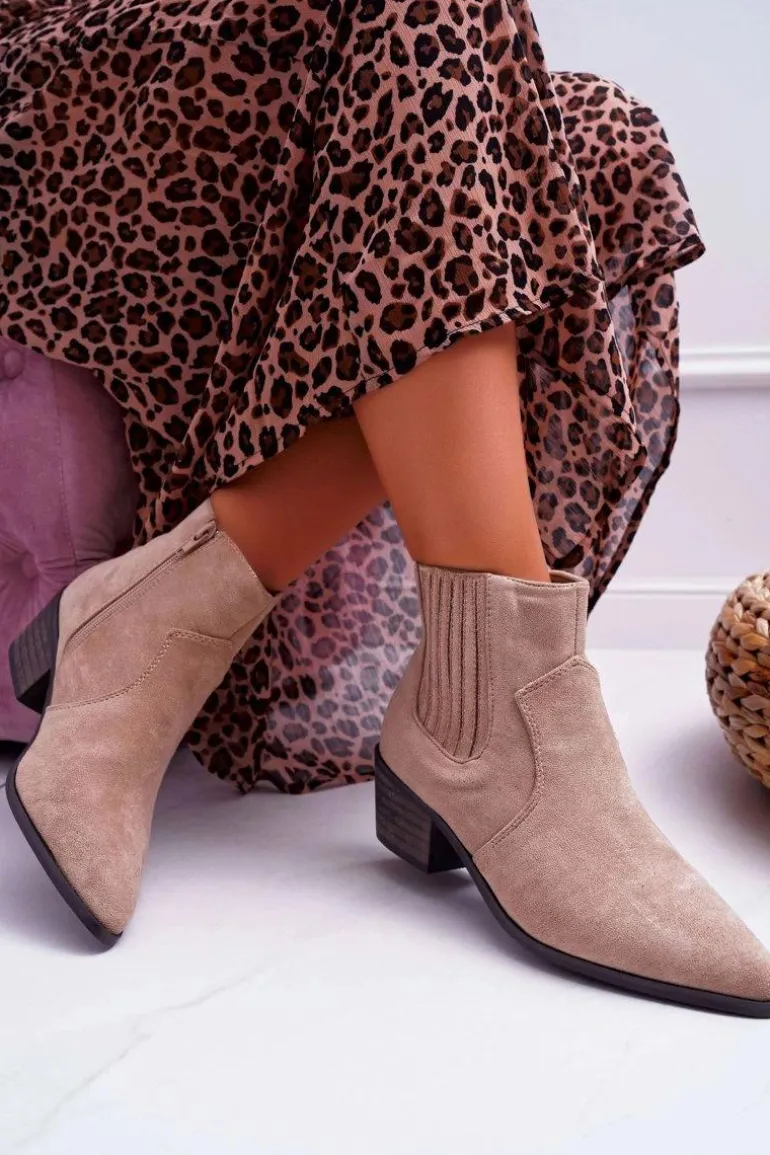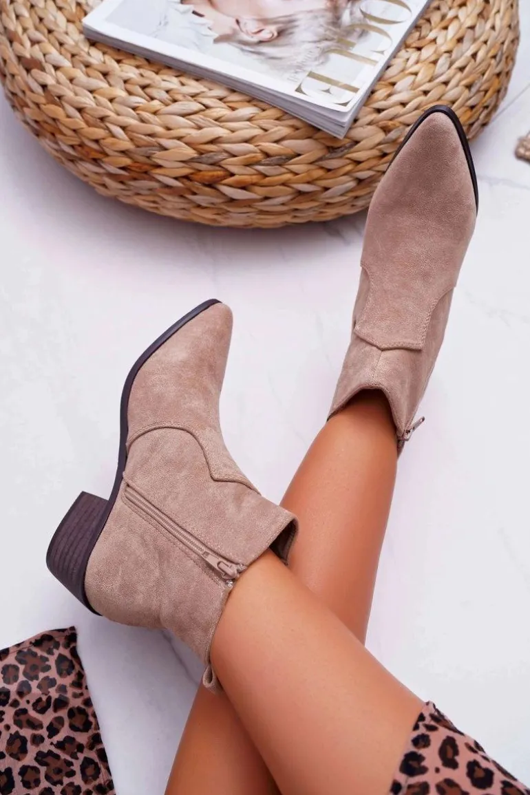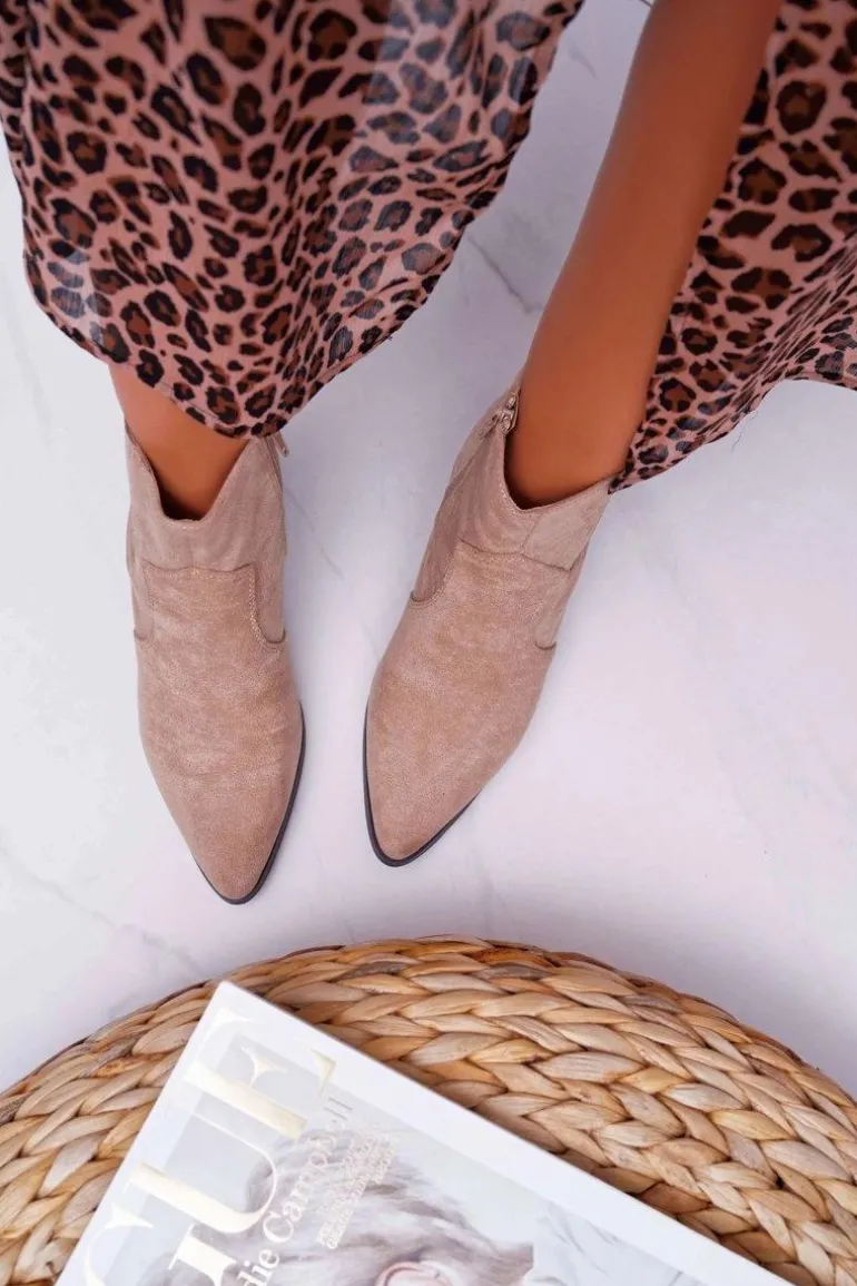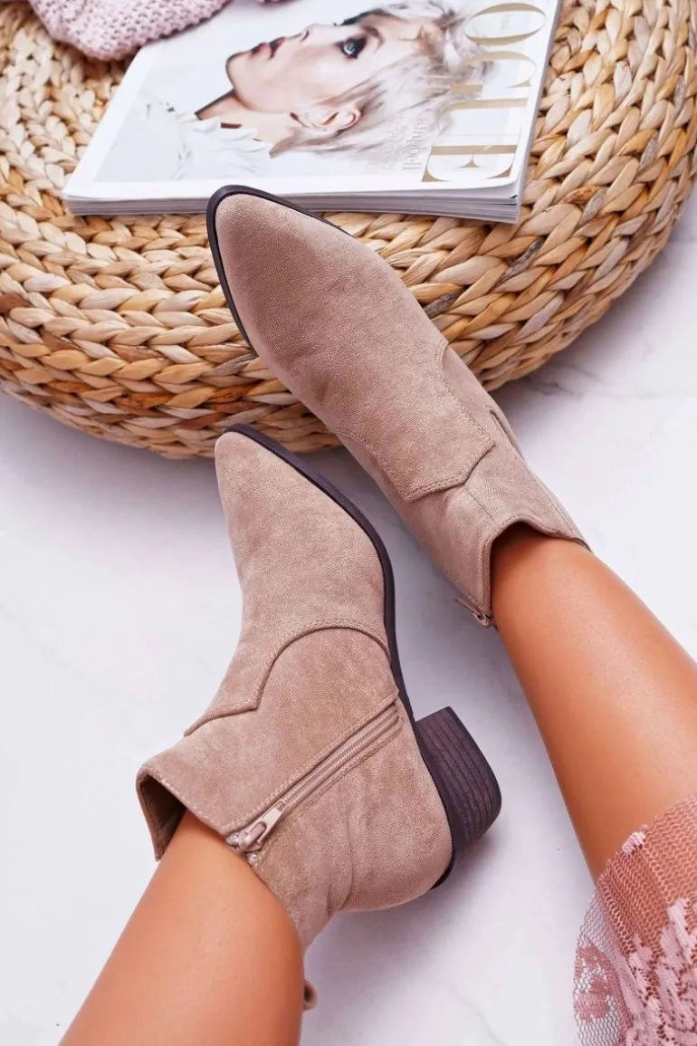Botki Damskie Płaski Obcas Beżowe Umberco