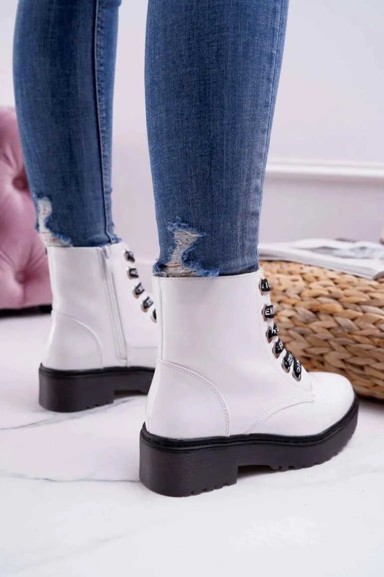 Botki Damskie Płaski Obcas Glany Lakierowane Białe Sergio Leone TR726