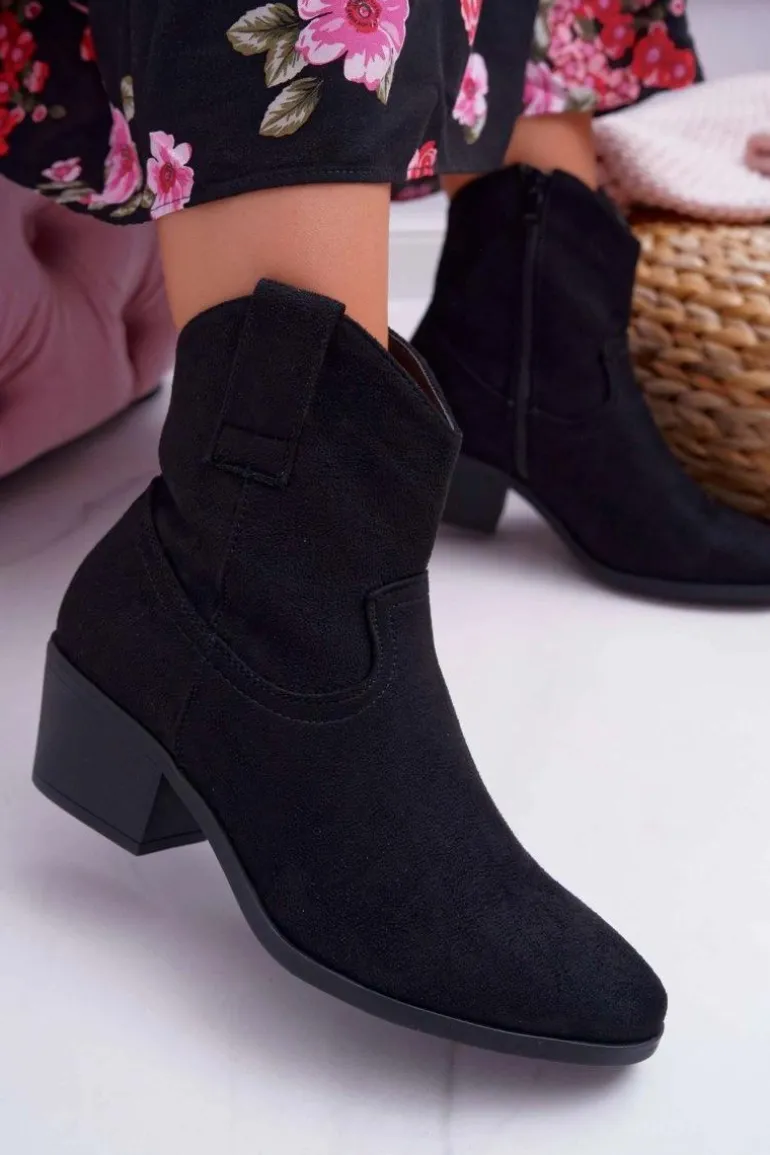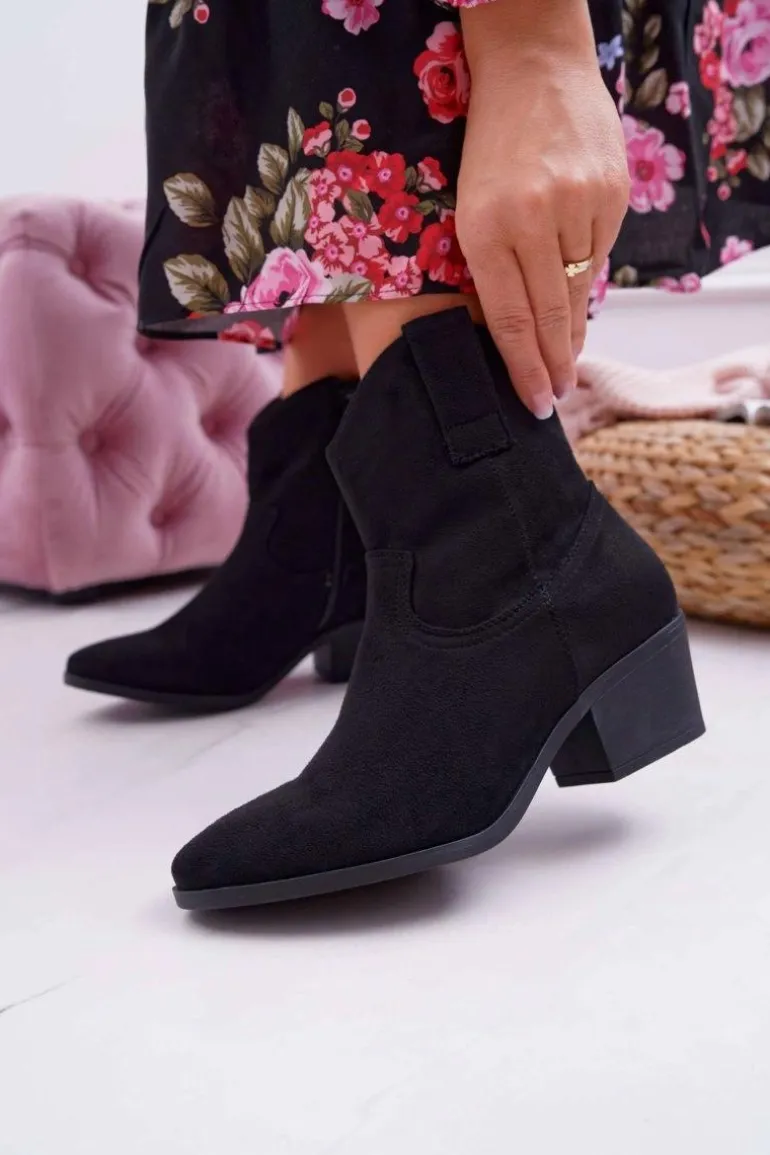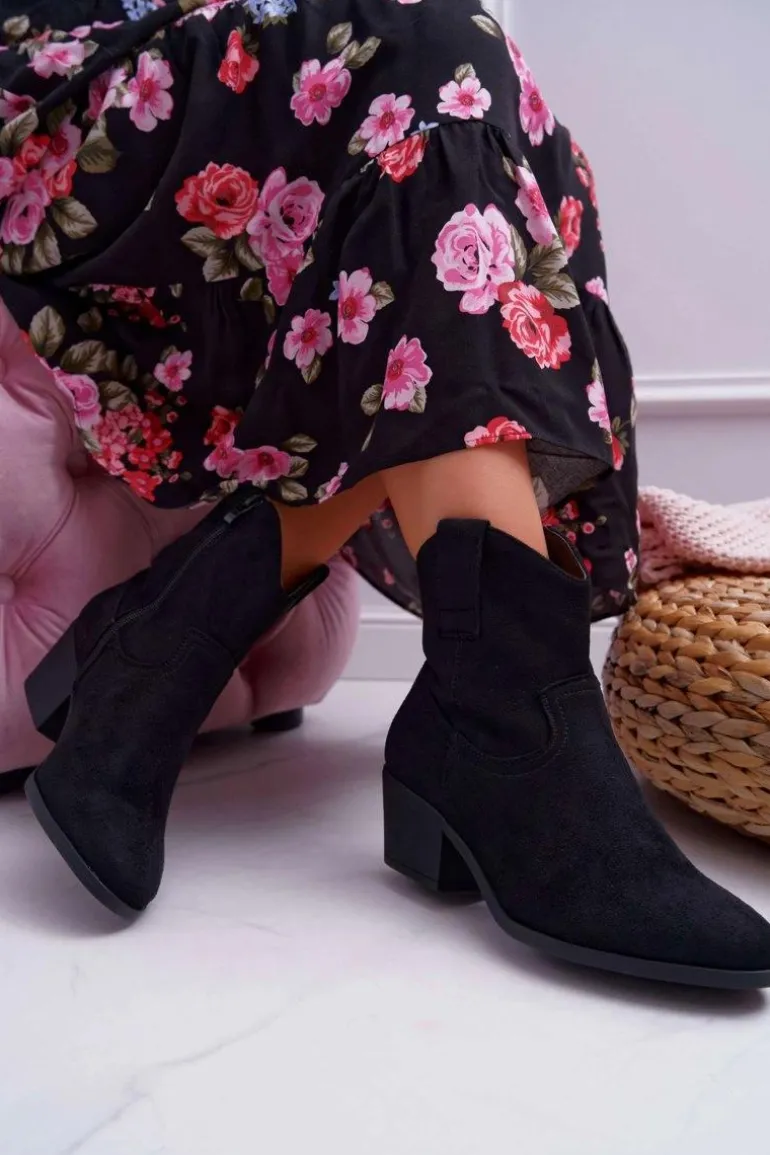 Botki Damskie Płaski Obcas Kowbojki Czarne Telifa