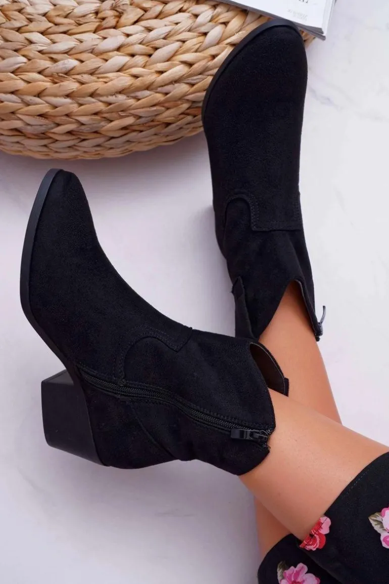 Spraw sobie odrobinę luksusu i wybierz nasze wspaniałe botki na obcasie. Niepowtarzalne botki w stylu kowbojek, które idealnie pasują do jesiennych stylizacji. Suwak na boku ułatwi nam zakładanie. Wnętrze pokryte delikatnym kocem obuwniczym, które da nam poczucie komfortu nawet w najchłodniejsze dni! Przy wyborze rozmiaru prosimy sugerować się tabelą rozmiarów, która dostępna jest po najechaniu bądź kliknięciu w dany rozmiar.