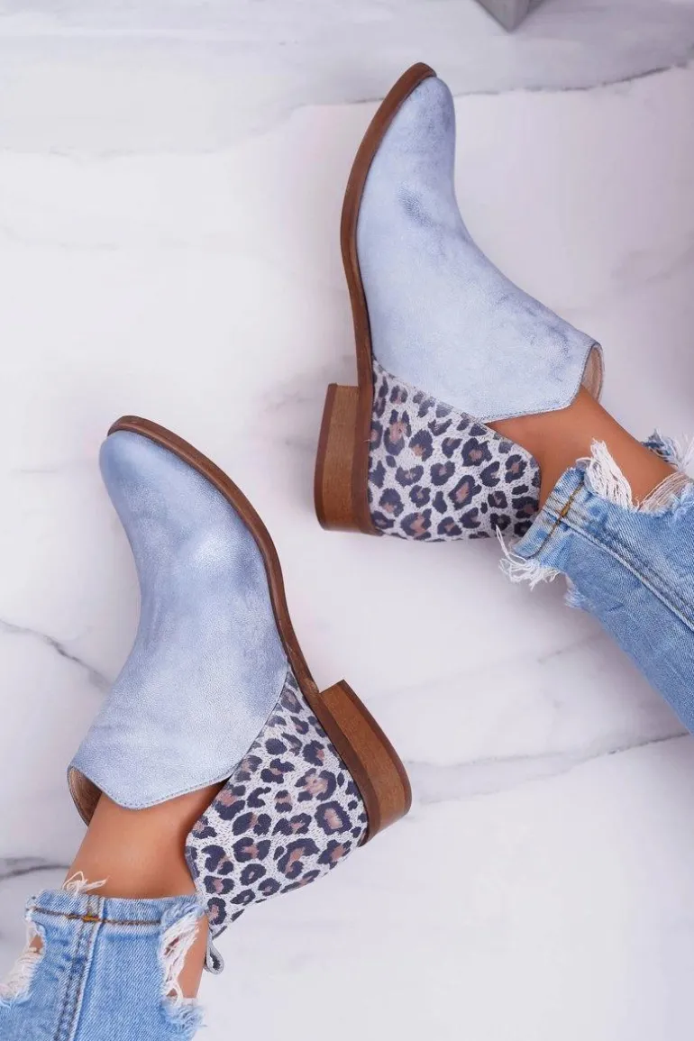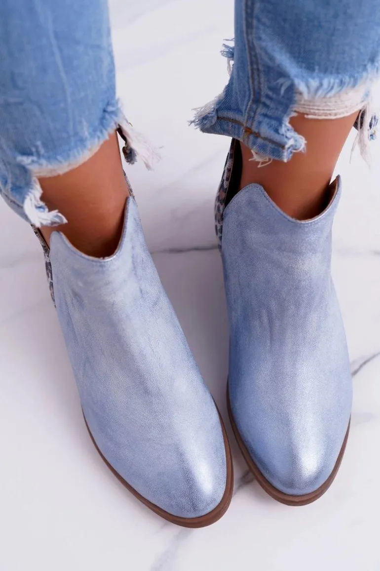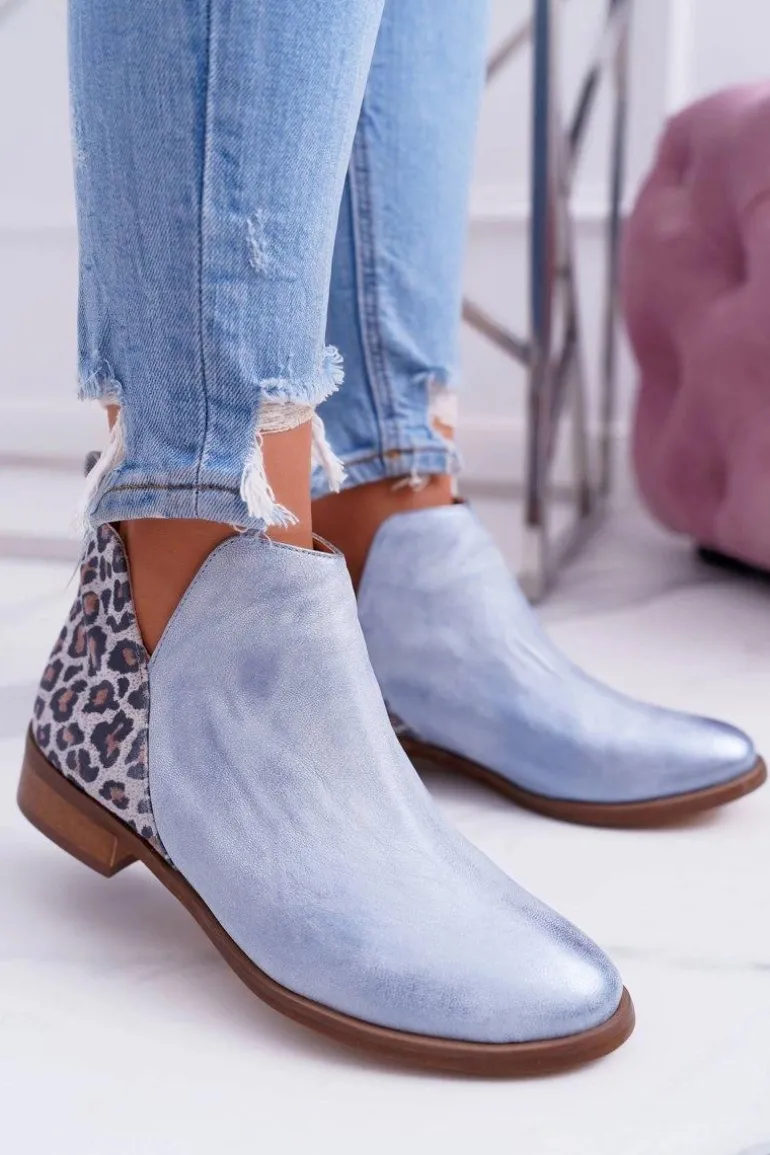 Botki Damskie Płaski Obcas Wiosenne Skórzane Niebieskie Madness