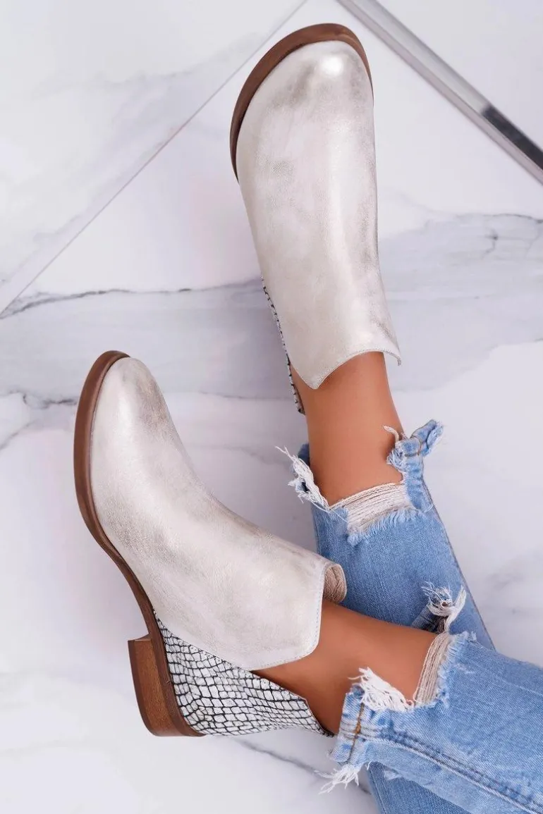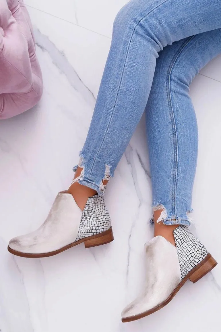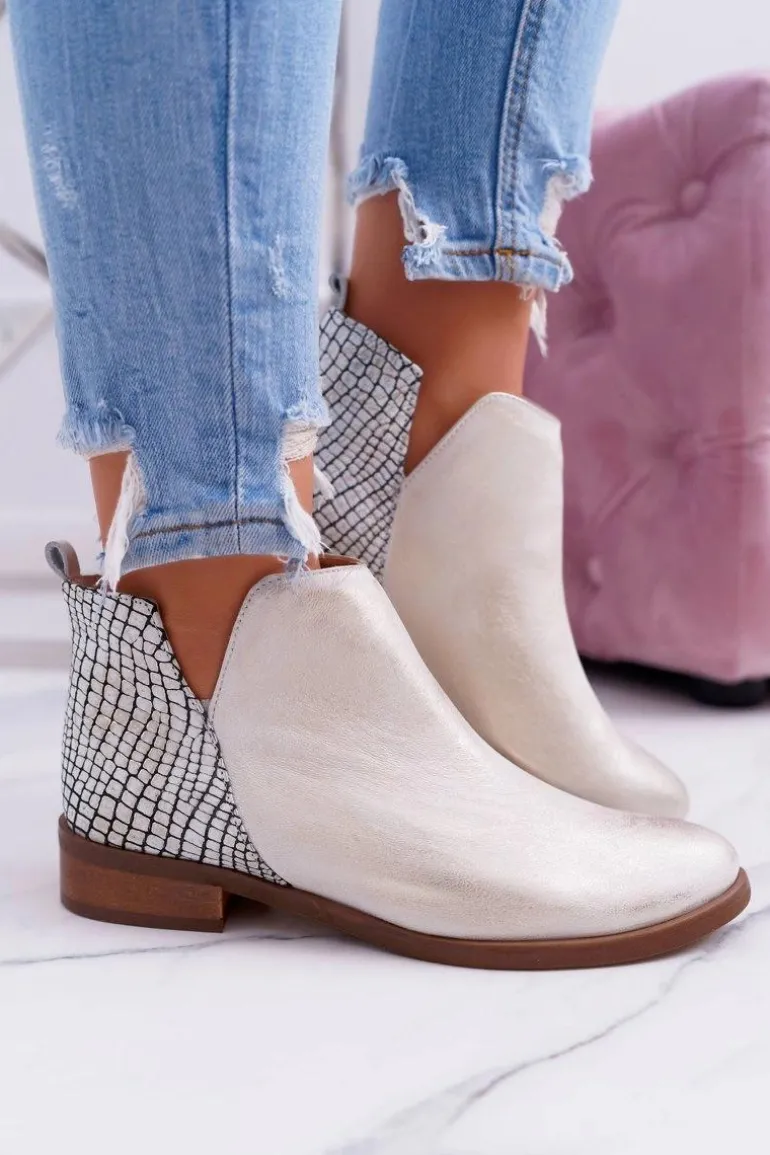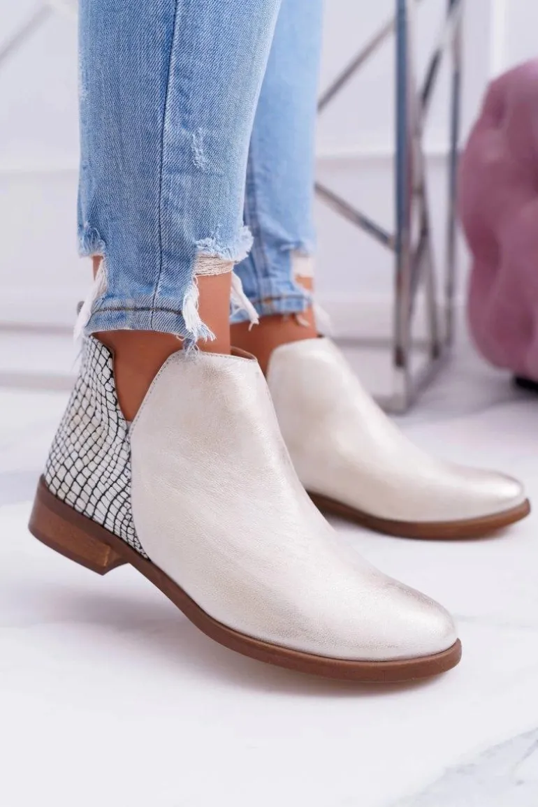 Botki Damskie Płaski Obcas Wiosenne Skórzane Przecierane Złoto Madness