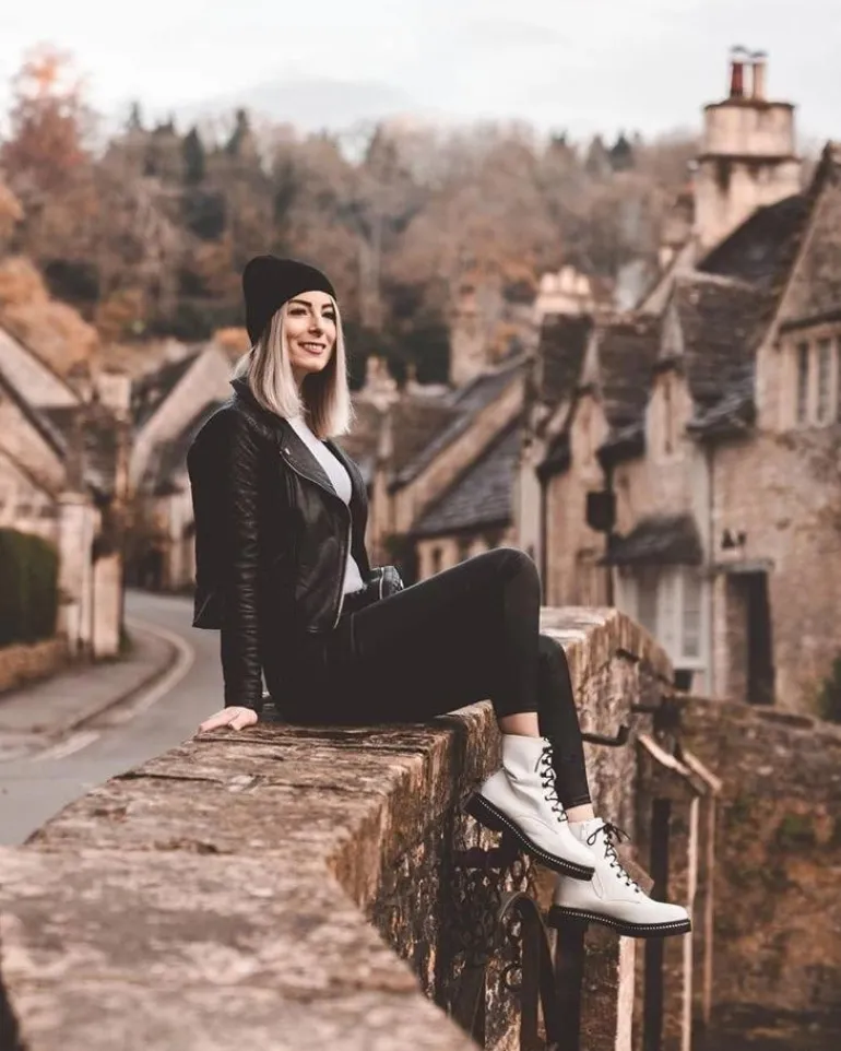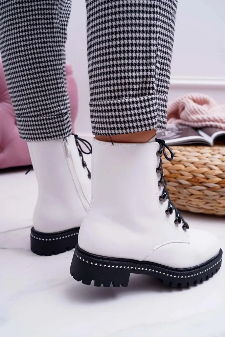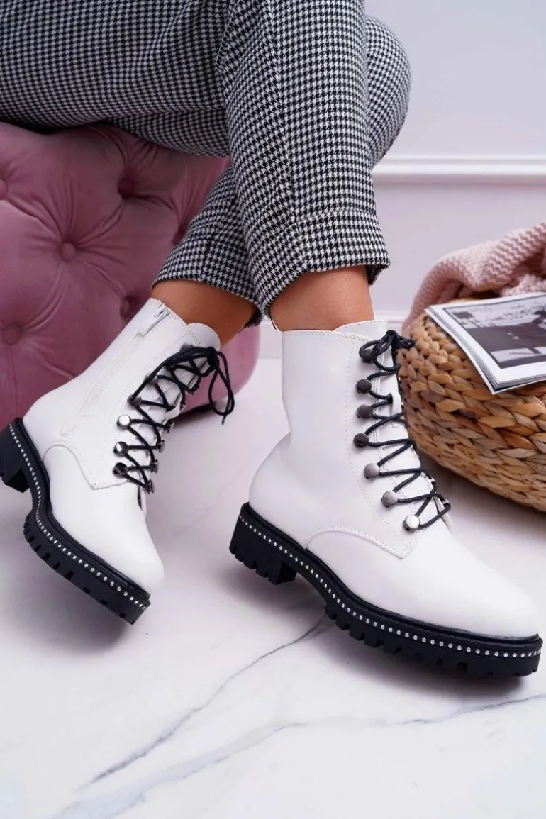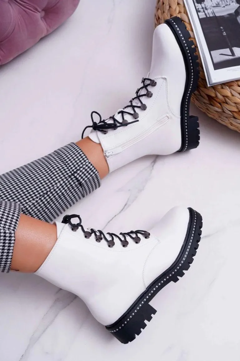 Botki Damskie Płaski Obcas Wysokie Glany Białe Buena