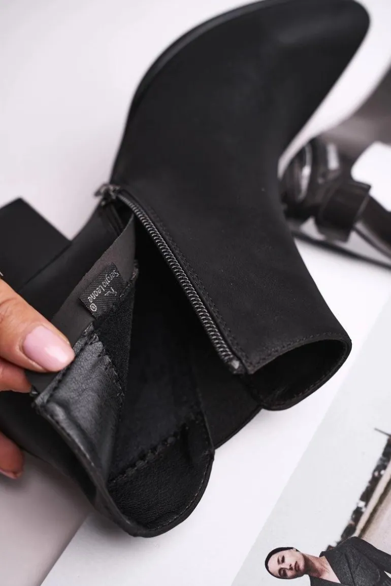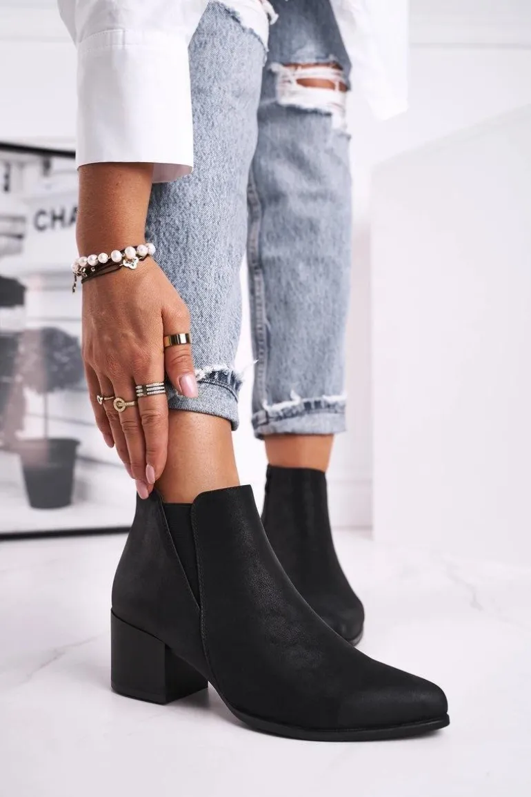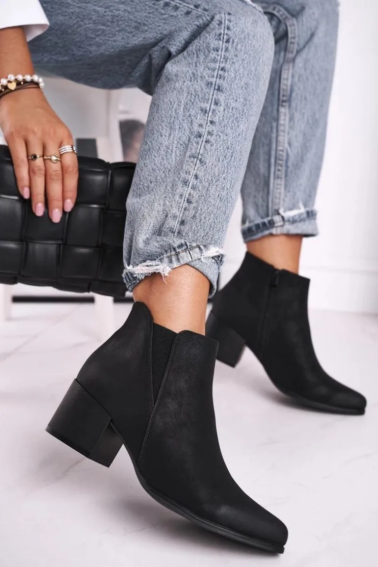 Botki Damskie Sergio Leone Sztyblety Eko Nubuk Czarne BT621