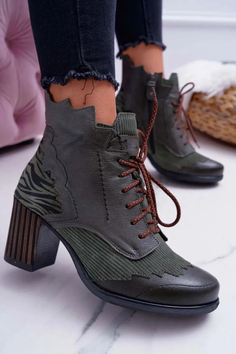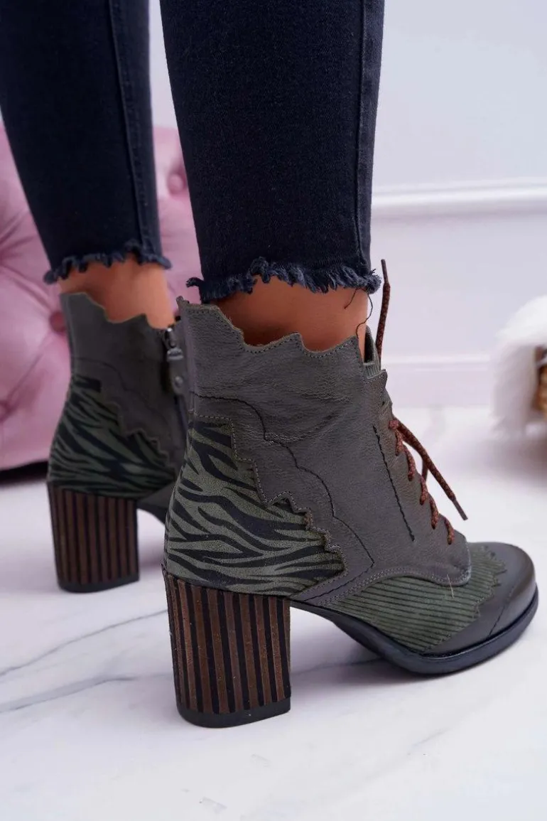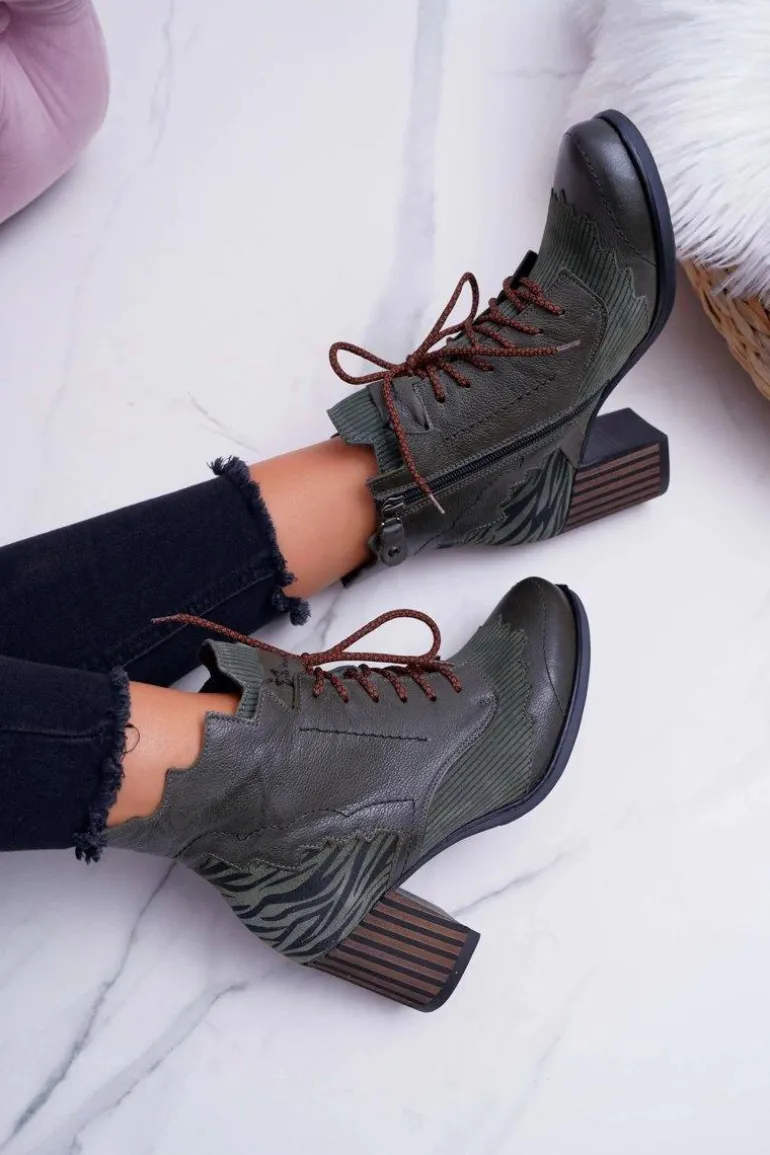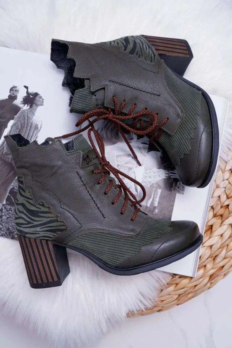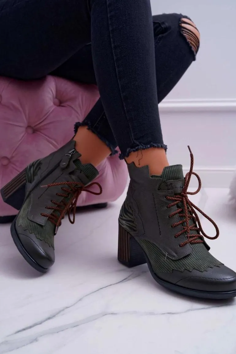 Botki Damskie Skórzane Maciejka Zielone 03190-09