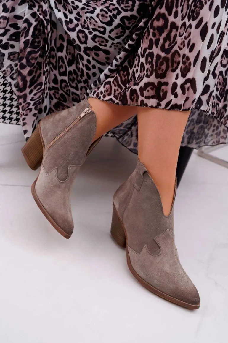 Botki Damskie Skórzane na Obcasie Cappuccino Chavai