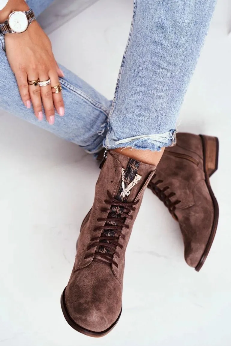 Botki Damskie Skórzane Nubuk Cappuccino Nicole 2593