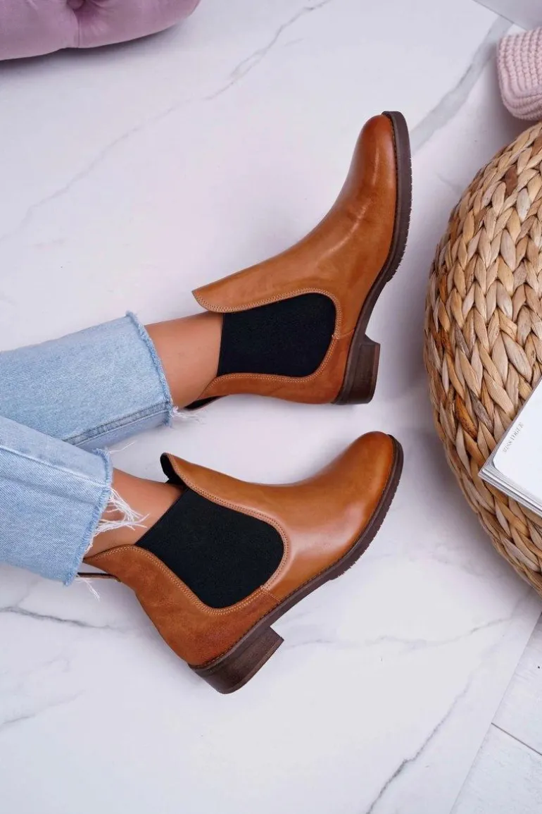 Botki Damskie Skórzane Sztyblety Maciejka Camel 04359