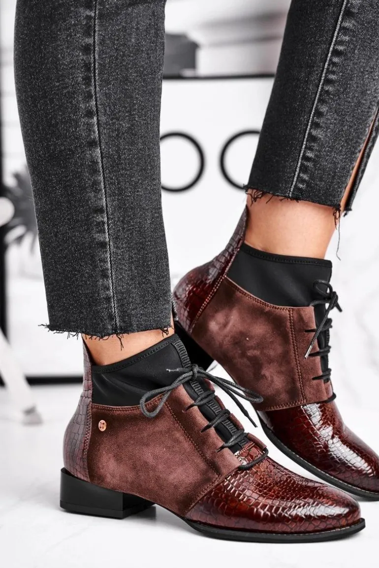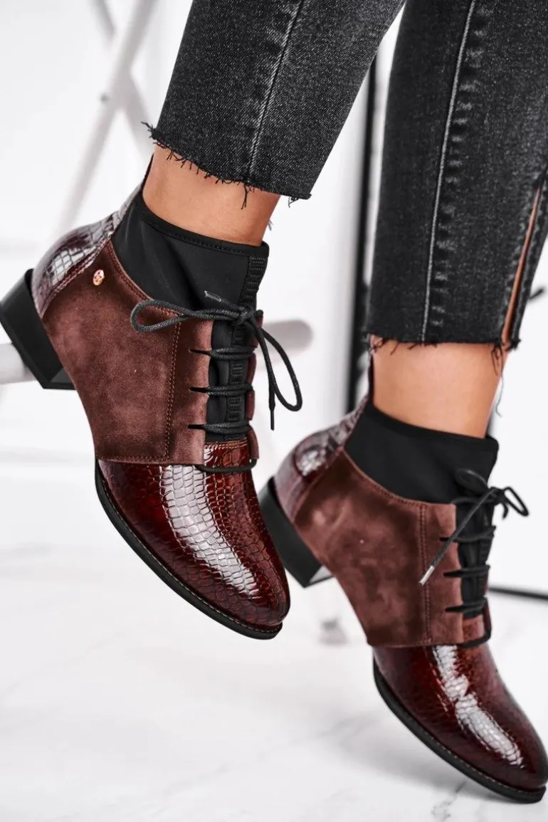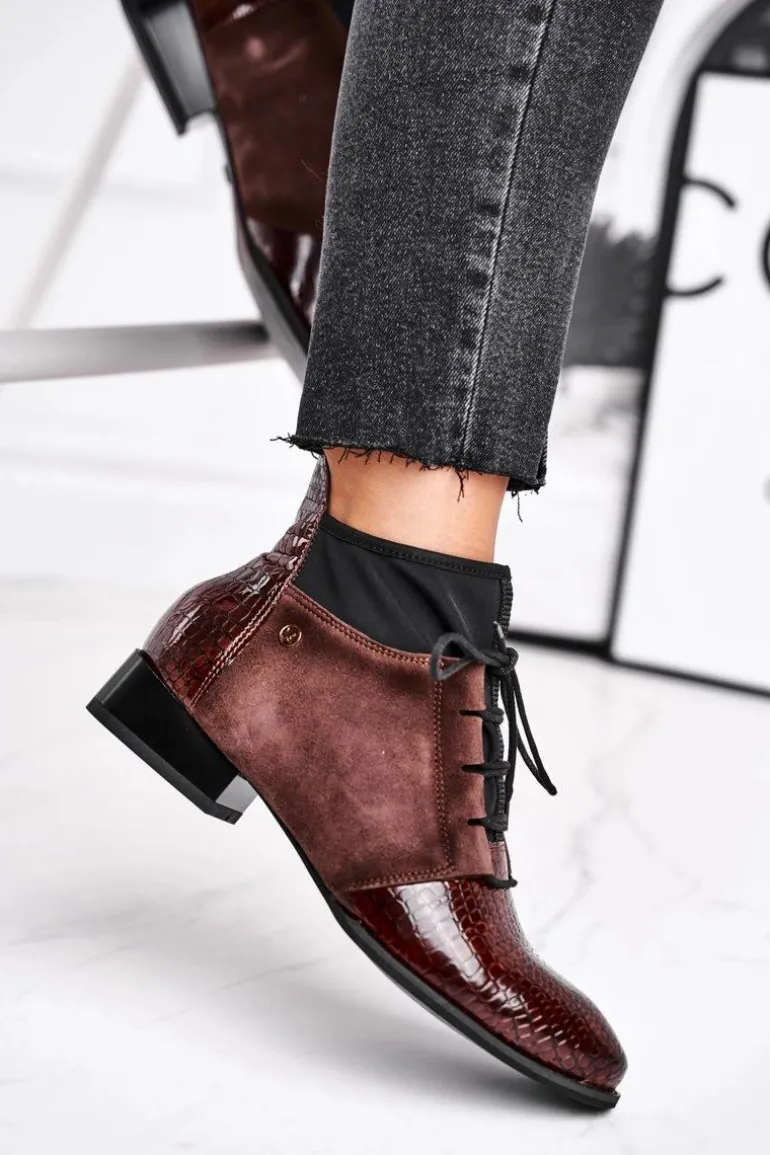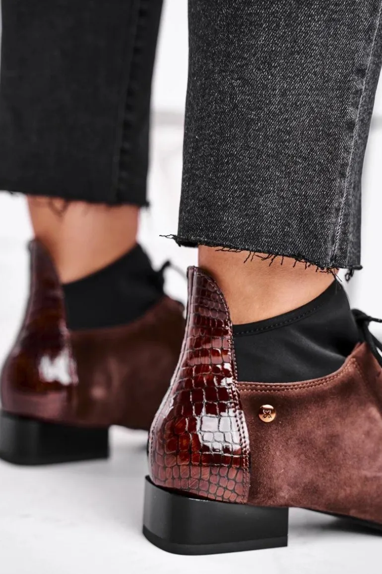 Botki Damskie Skórzane Trzewiki Maciejka Brązowe 04744-02