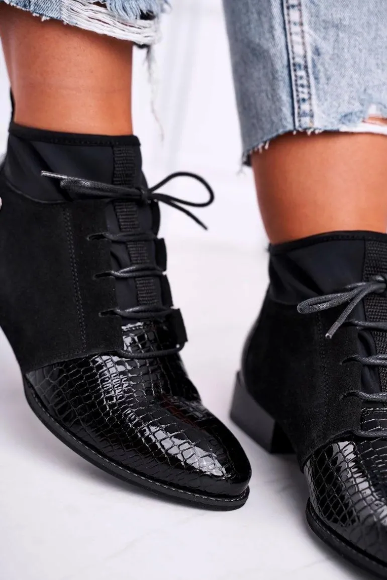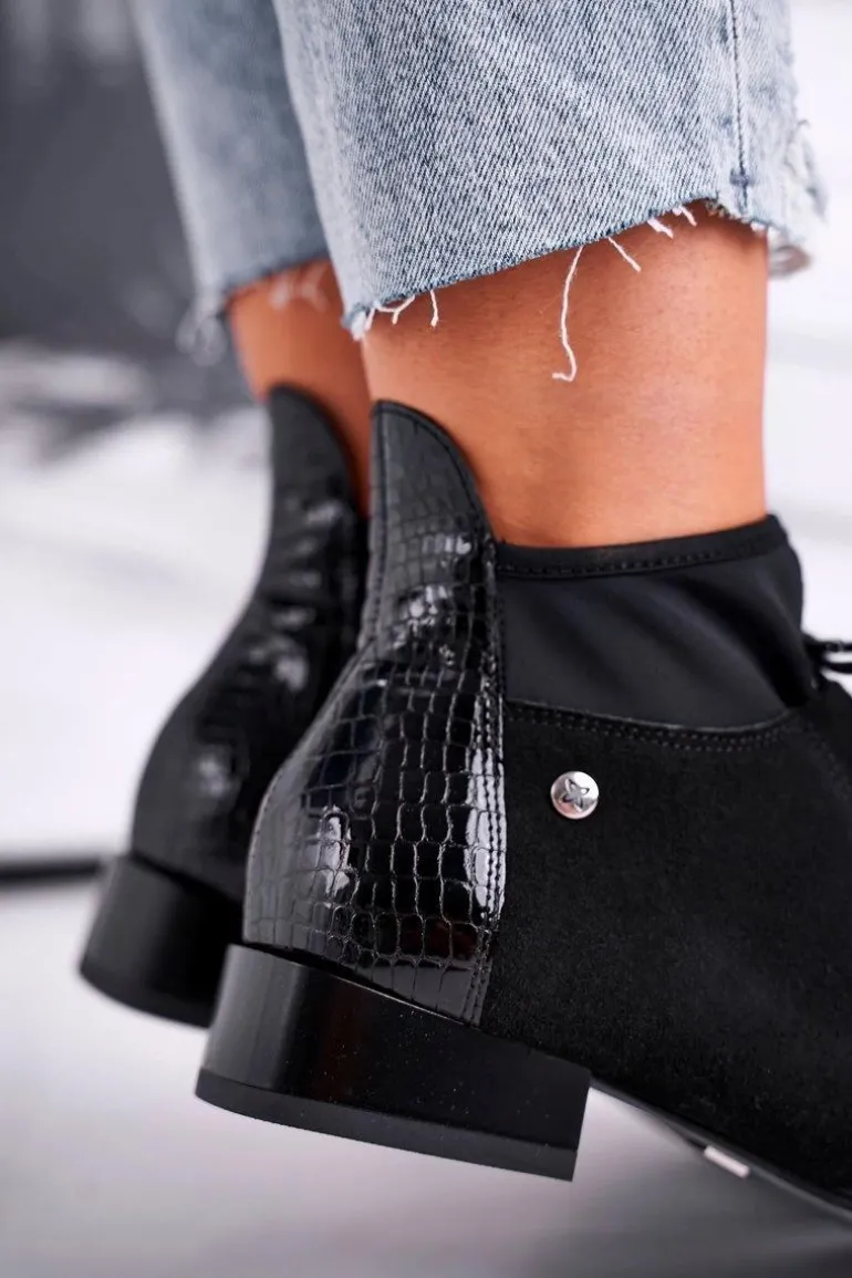 Botki Damskie Skórzane Trzewiki Maciejka Czarne 04744-20