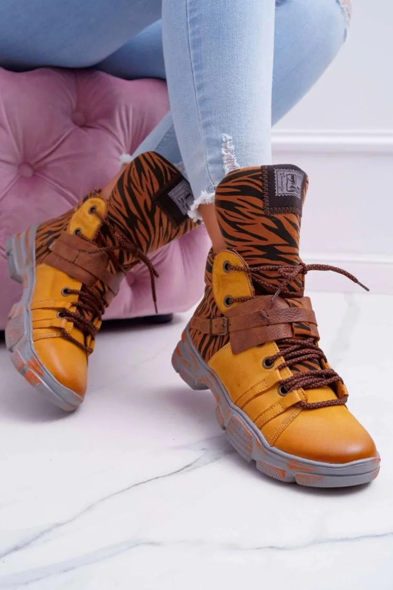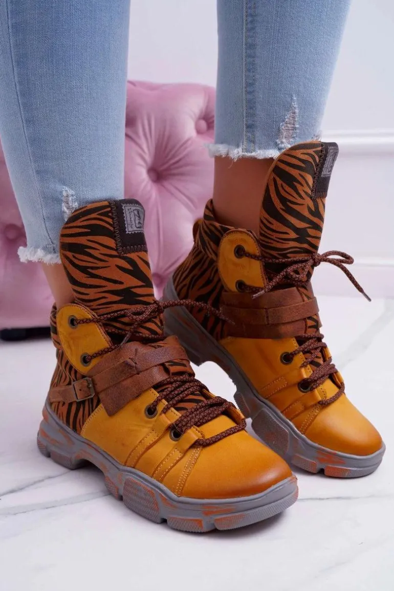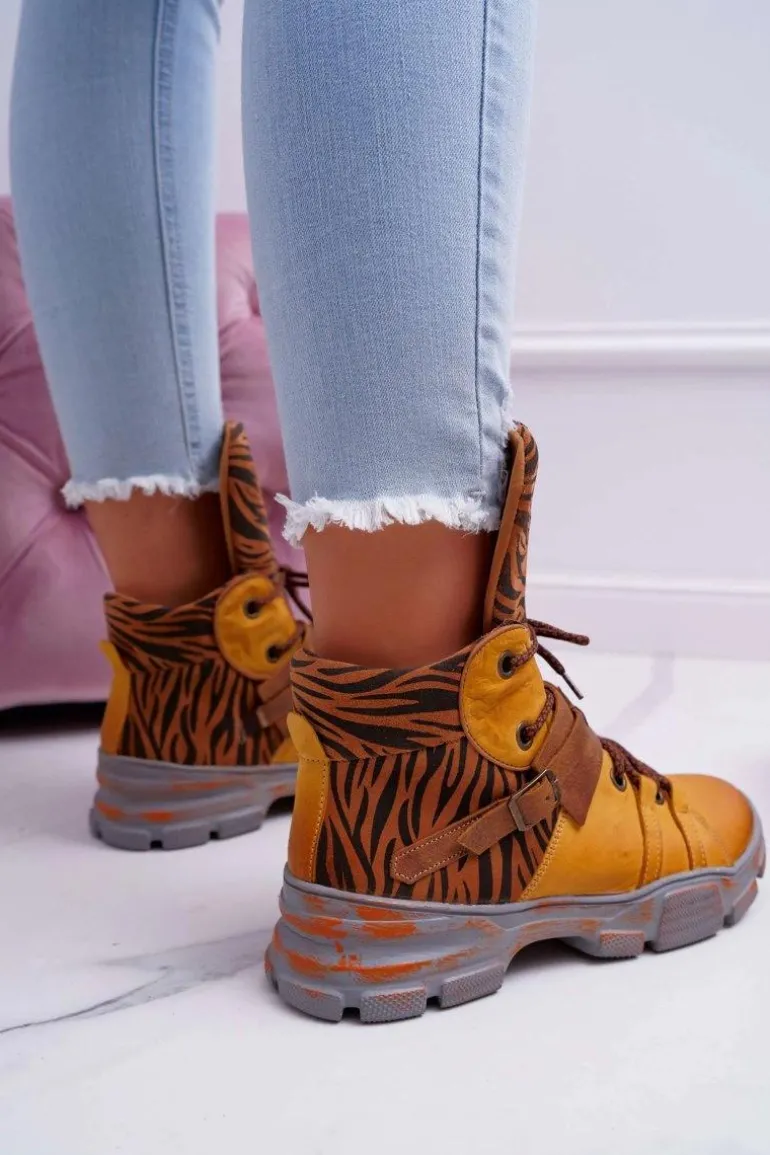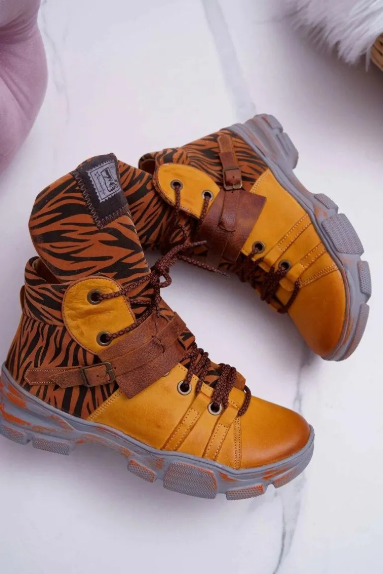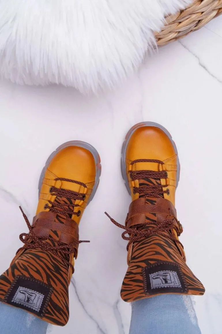 Botki Damskie Skórzane Trzewiki Maciejka Żółte 04218