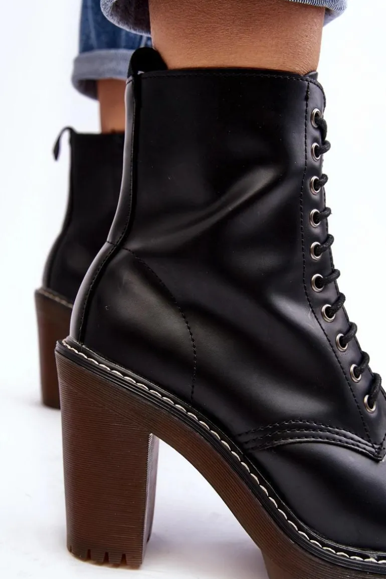 Botki Damskie Sznurowane Na Słupku Czarne Arove